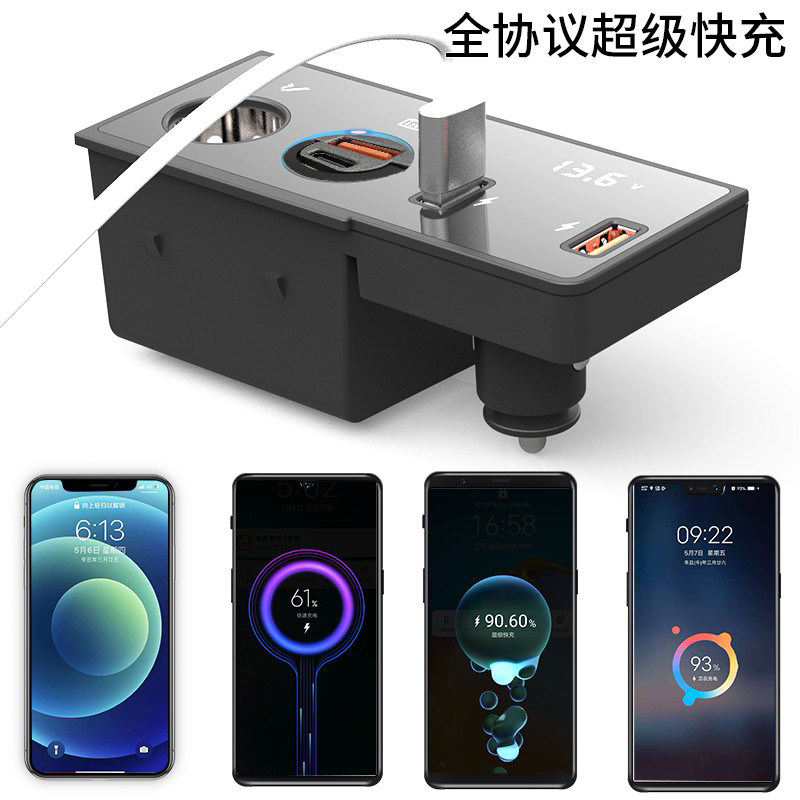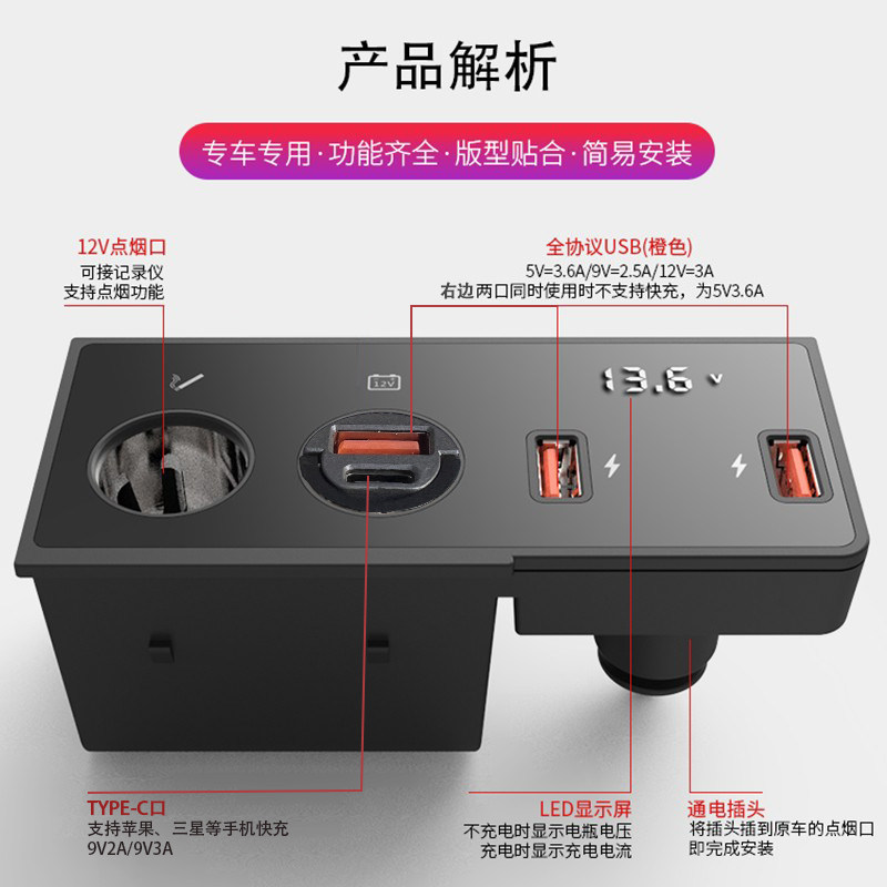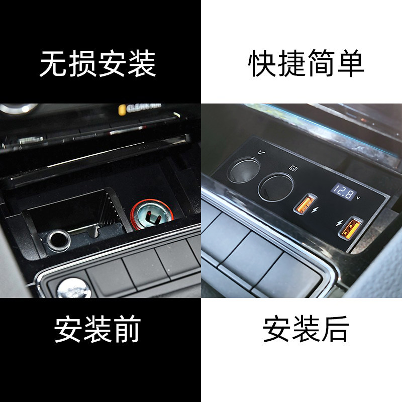 大众速腾车载充电器点烟器USB改装快充PD苹果一拖二三转换器插头