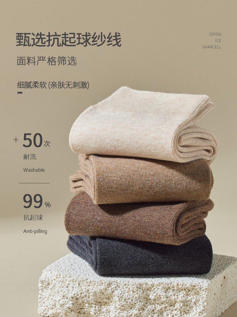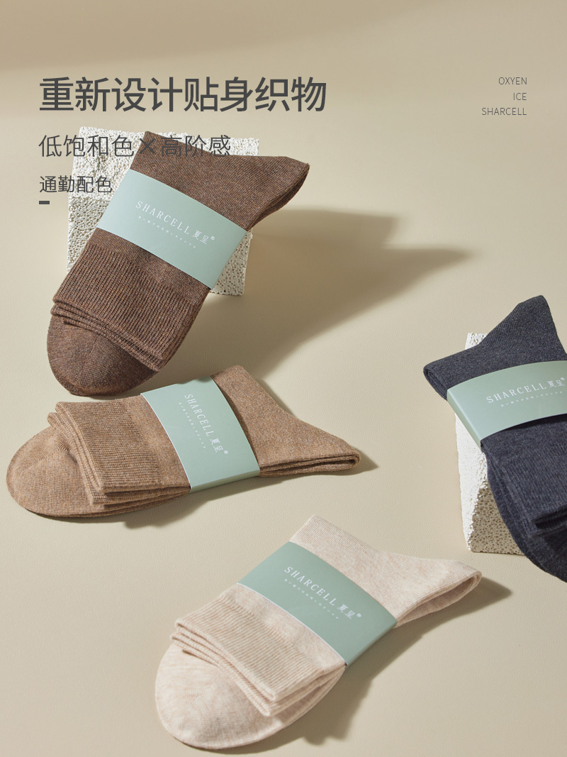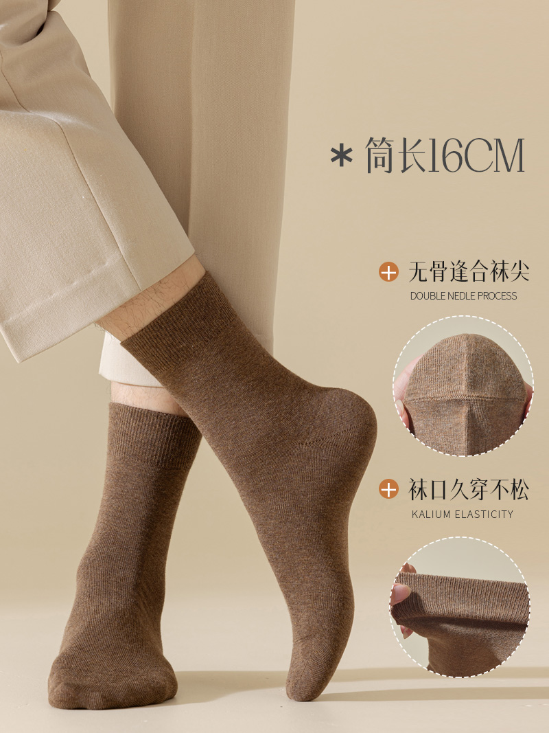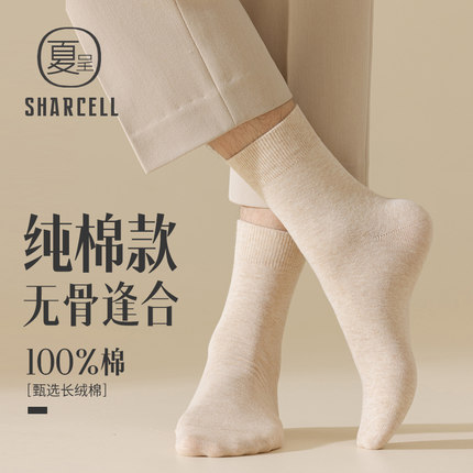 袜子男纯棉秋季中筒袜防臭吸汗无骨日系米色商务皮鞋正装男士长袜