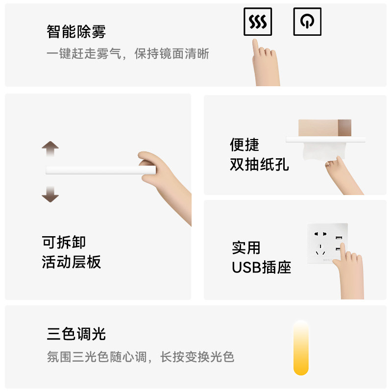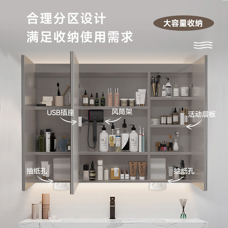 先姿浴室智能镜柜单独卫生间不锈钢洗手台卫浴收纳镜子壁挂柜定制