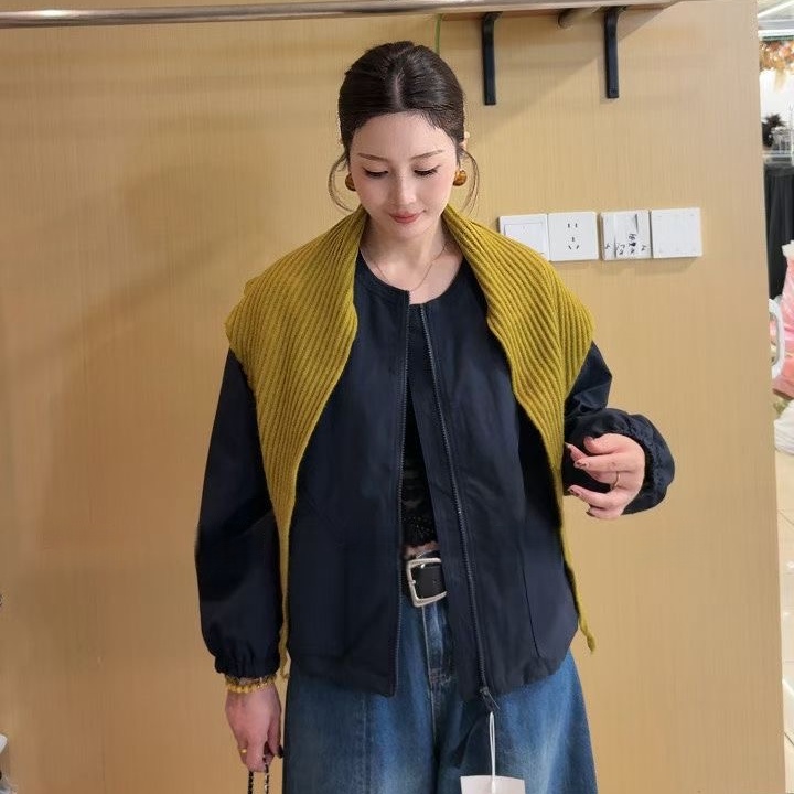 韩版针织披肩圆领棉衣外套女2025秋冬新款显瘦小个子拉链夹克棉服