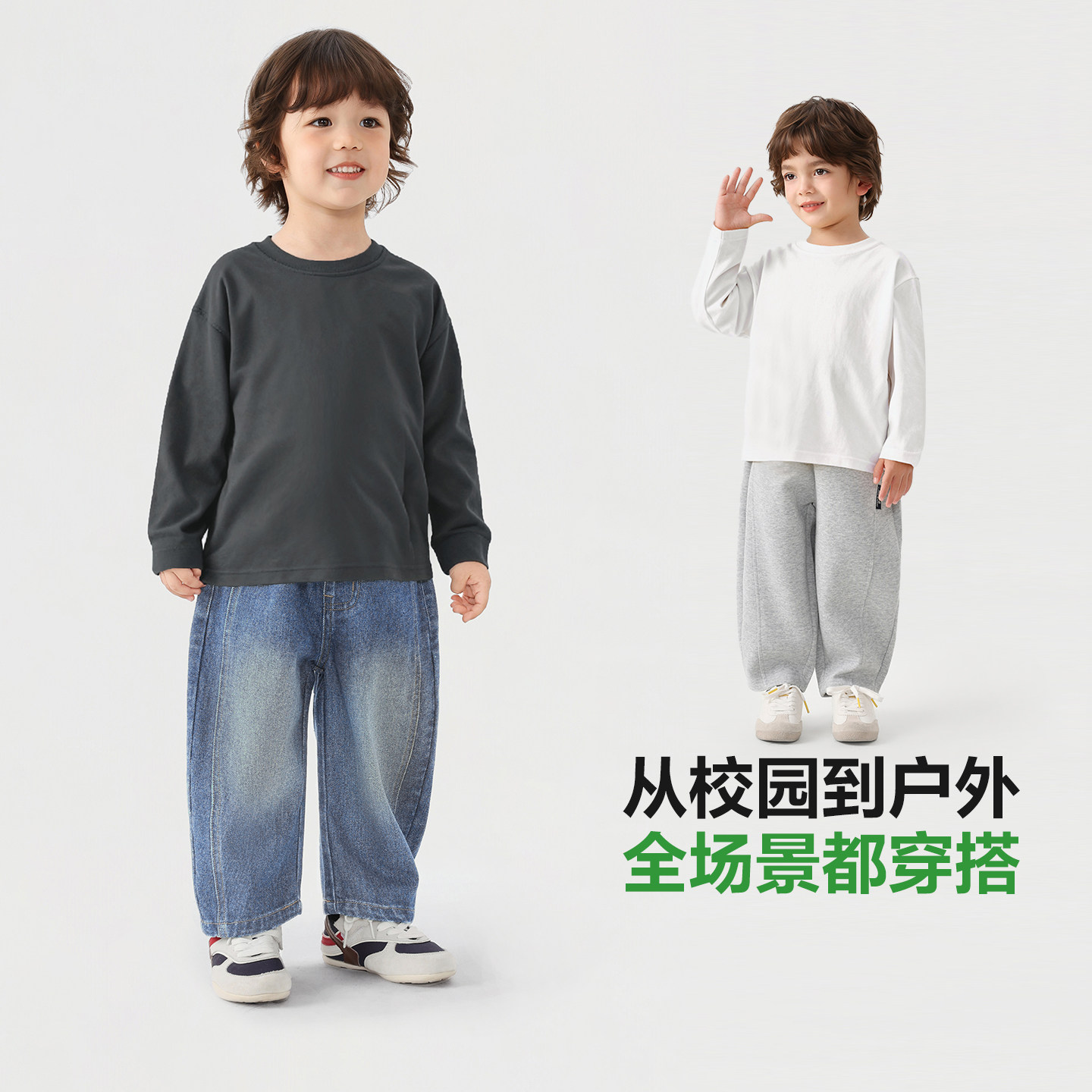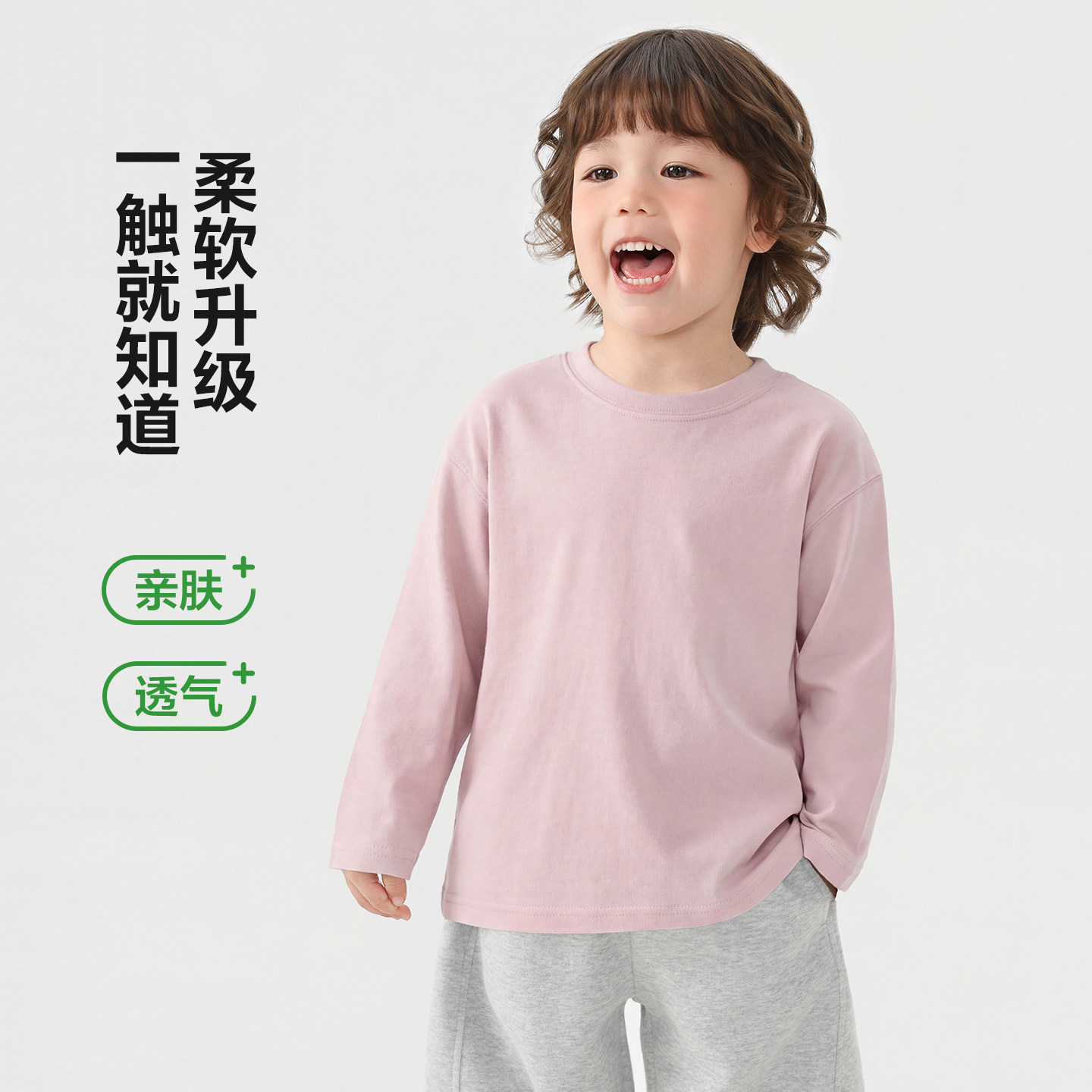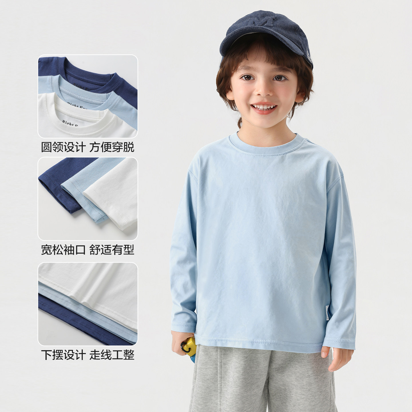右欧儿童纯棉休闲长袖T恤男童春秋透气内搭打底衫小宝宝春装上衣