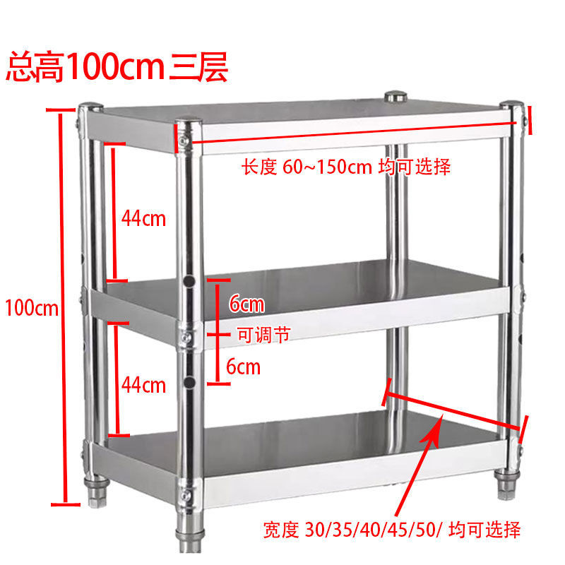 不锈钢厨房置物架落地多层微波炉架台面收纳架三层烤箱架放锅架子