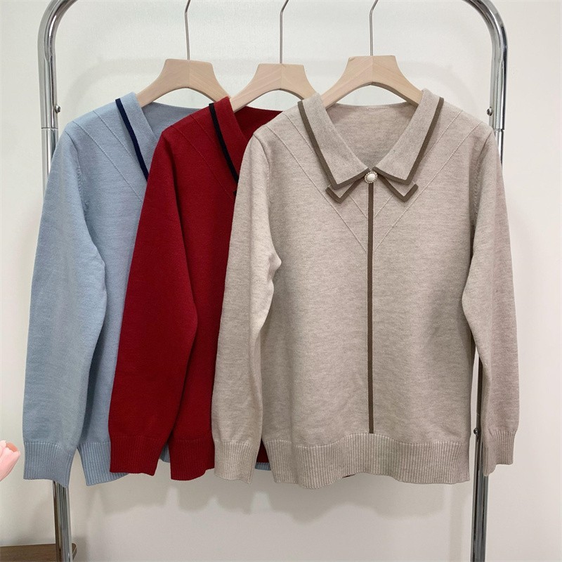 年轻妈妈春装新款洋气针织打底衫女中老年人春秋时尚宽松大码毛衣