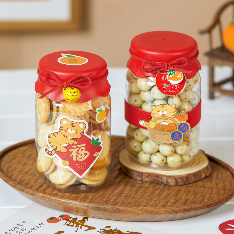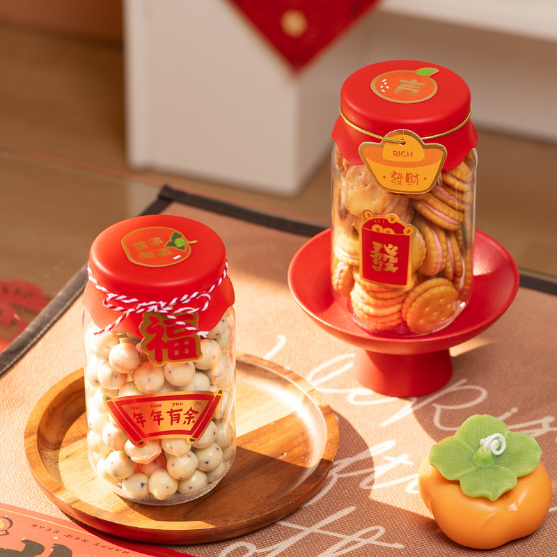 新年纽扣饼干奶枣奶乐楂太妃糖果溶豆包装盒烘焙透明圆形塑料罐子