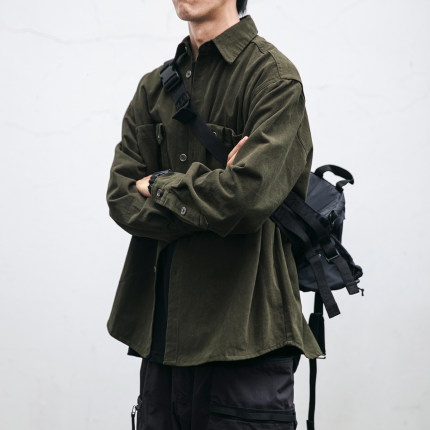 质感雪花绒 日系复古工装磨毛衬衫男长袖宽松衬衣百搭休闲外套潮