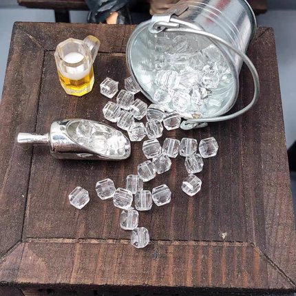 迷你食玩 过家家玩具 娃娃屋配件 迷你仿真冰块 仿真白砂糖 冰铲