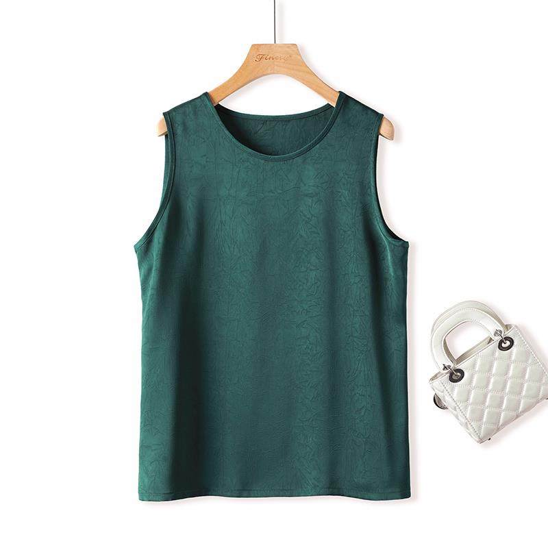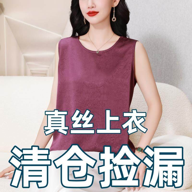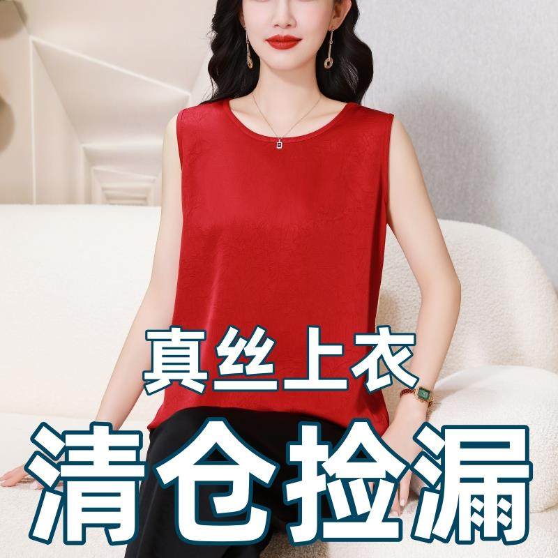 杭州真丝上衣新款妈妈夏装女士桑蚕丝香云纱背心无袖T恤宽松吊带