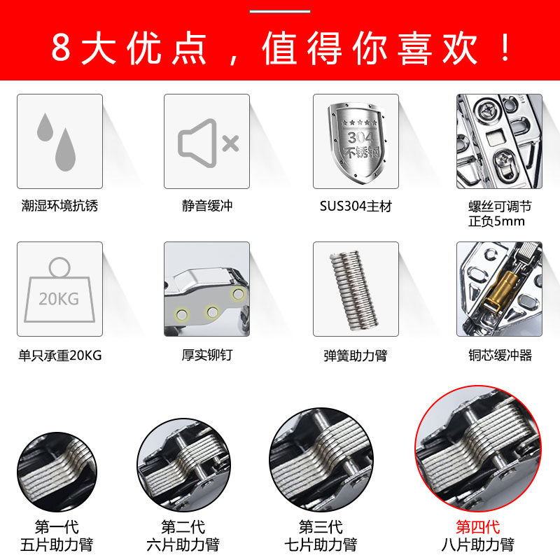 柜门铰链阻尼缓冲液压合页五金折叠飞机弹簧全盖橱柜门304不锈钢
