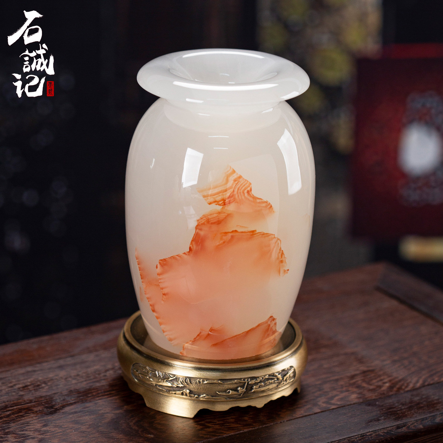 石诚记玉石干花瓶摆件个性客厅创意时尚插花装饰家用佛前小净瓶