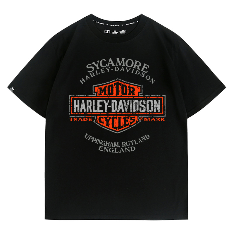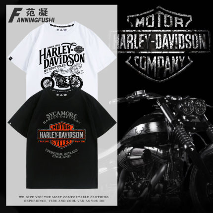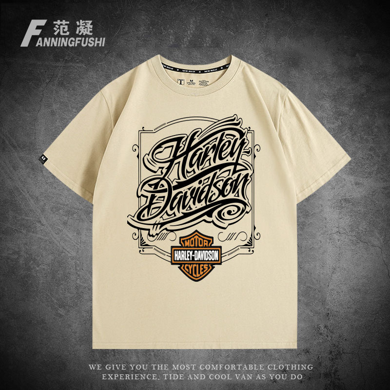 HARLEY潮牌复古印花哈重机车骑行休闲圆领T恤男纯棉夏宽松短袖