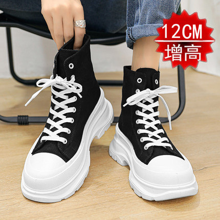 COS角色隐形内增高鞋男12cm10cm帆布鞋子百搭松糕厚底高帮老爹鞋