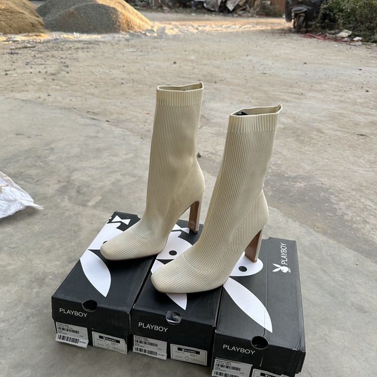 方头高跟袜靴2025网红瘦瘦靴短靴女细跟弹力靴春秋针织中筒单靴子