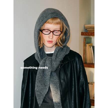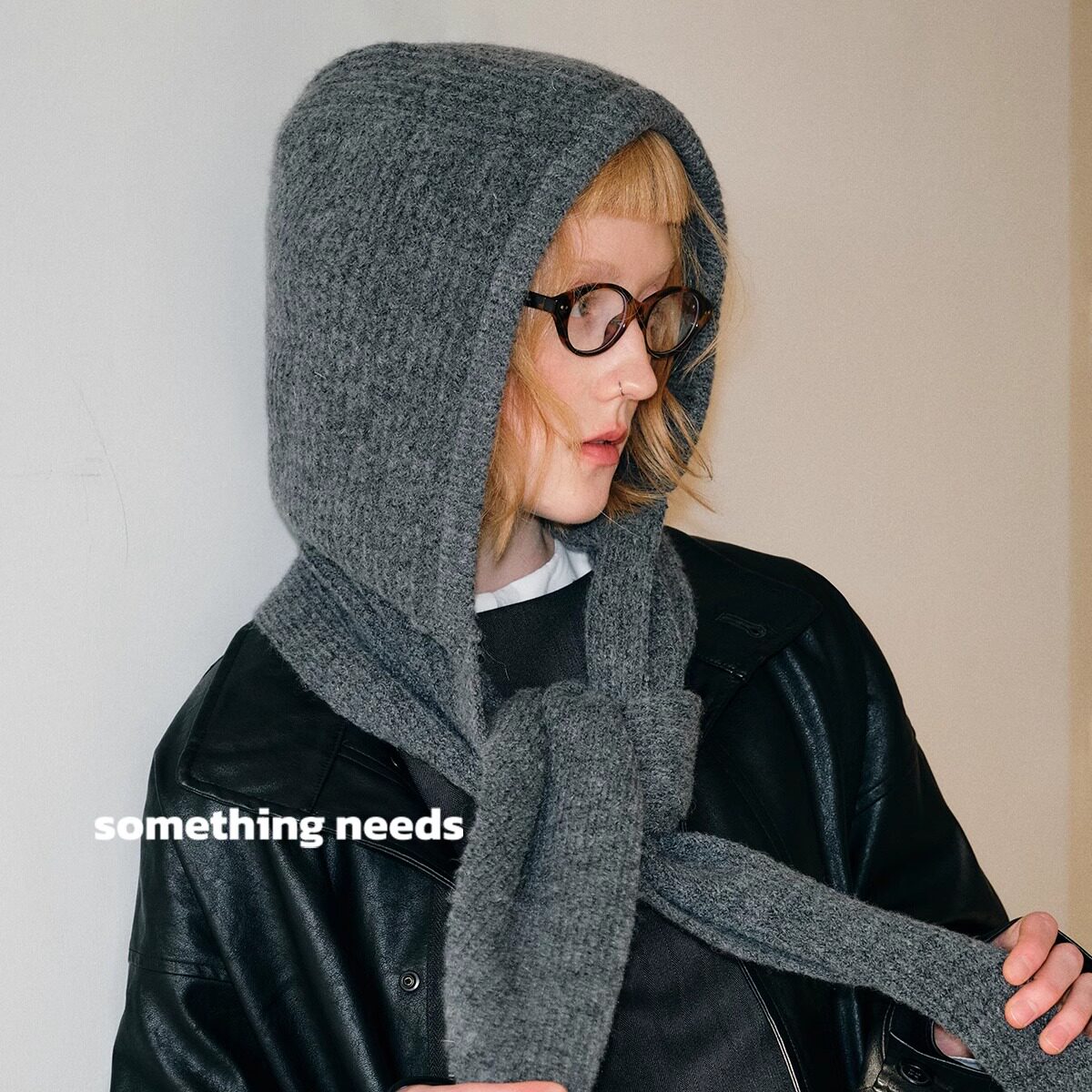 郑佰万 含羊毛帽子围巾一体针织帽女冬季围巾连帽小众护颈围脖潮
