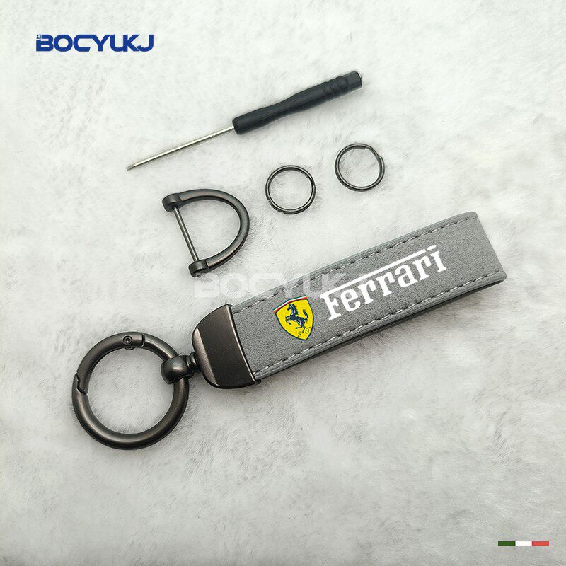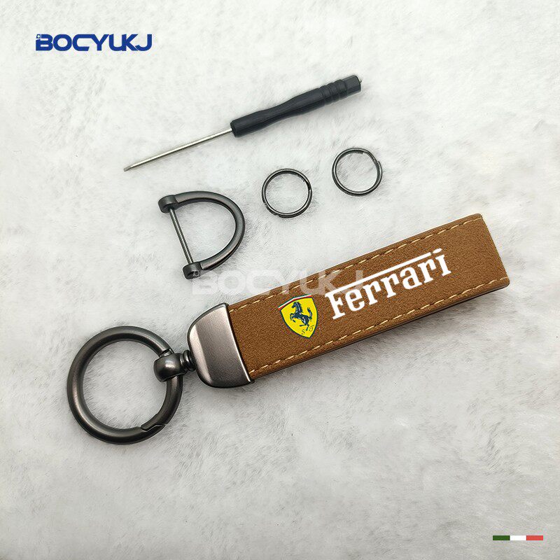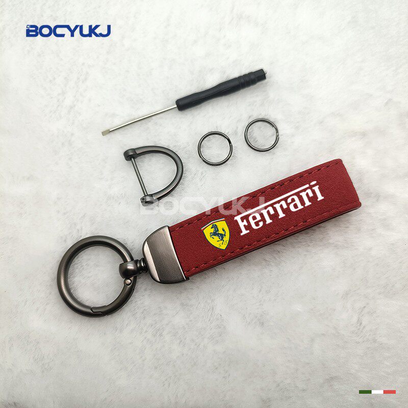 适用于法拉利汽车翻毛皮钥匙扣个性车标商务情侣钥匙链环挂件跨境