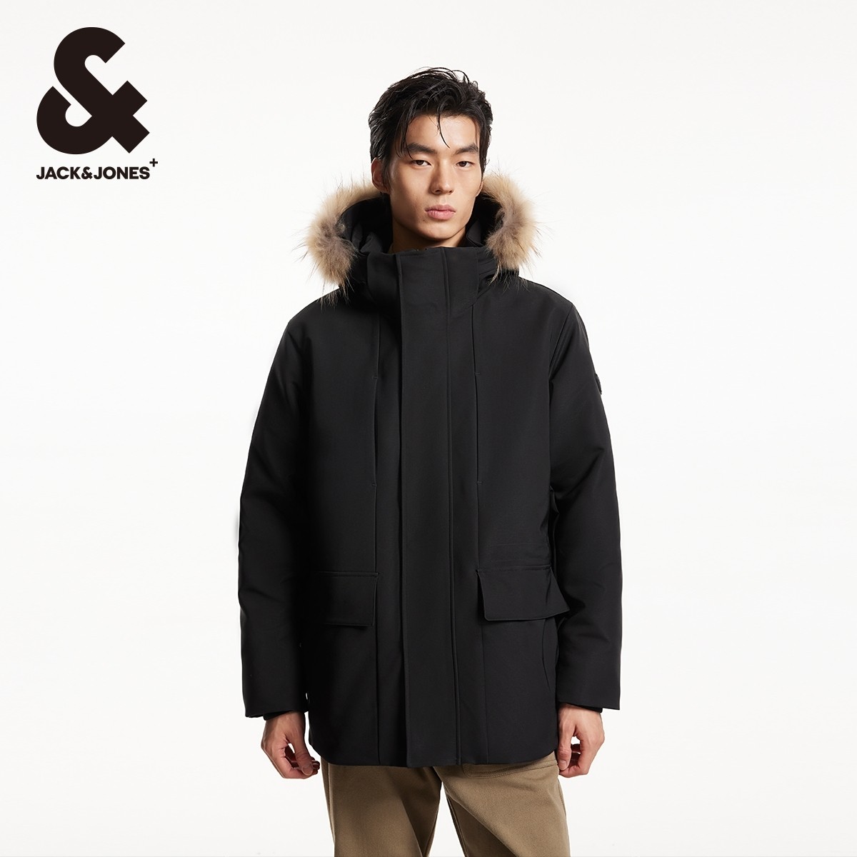 杰克琼斯男装秋冬新可拆卸毛领防风袖口贴布设计宽松连帽羽绒服