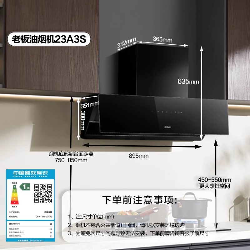老板23A3S侧吸式大吸力烟灶套装变频抽油烟机燃气灶家用官方旗舰