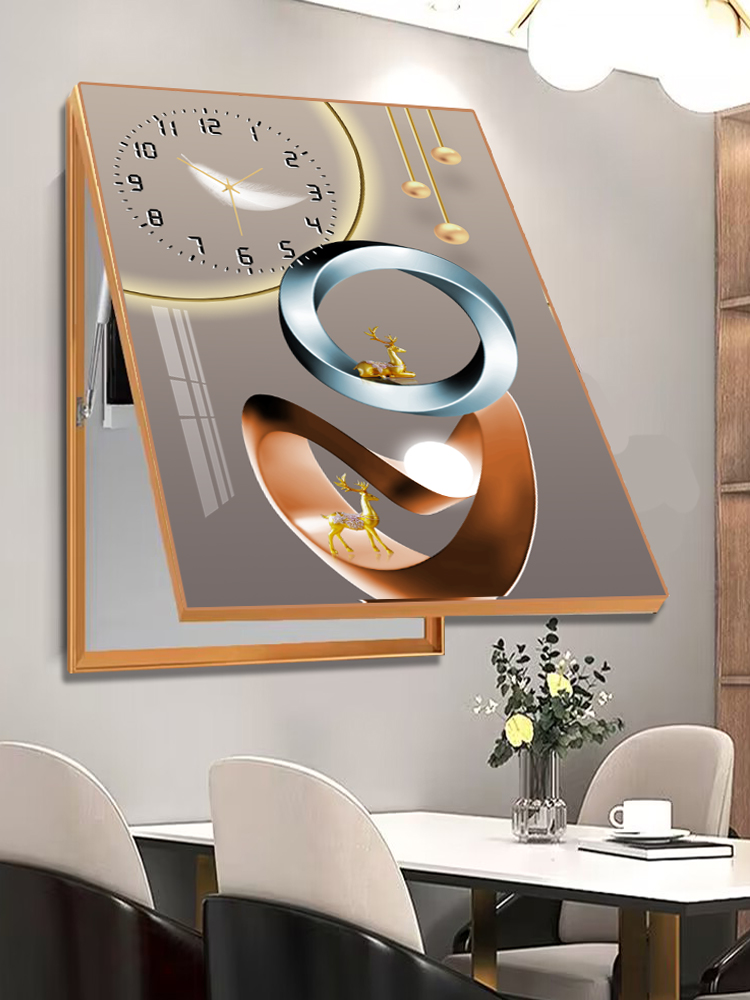 电表箱装饰画竖款新款带钟表时钟万年历配电箱挂画遮挡电闸箱开关