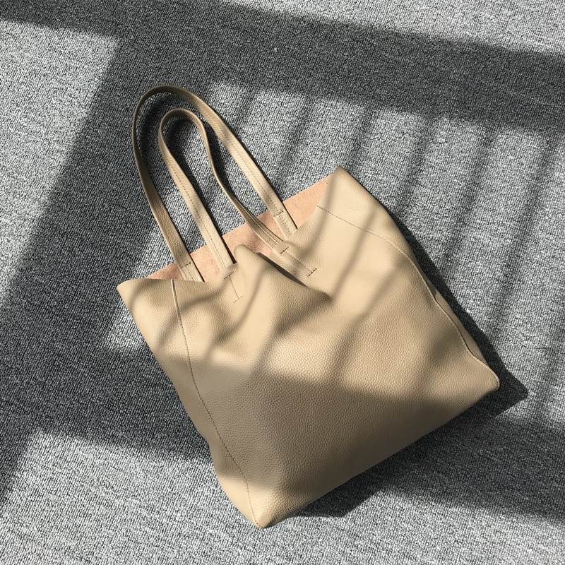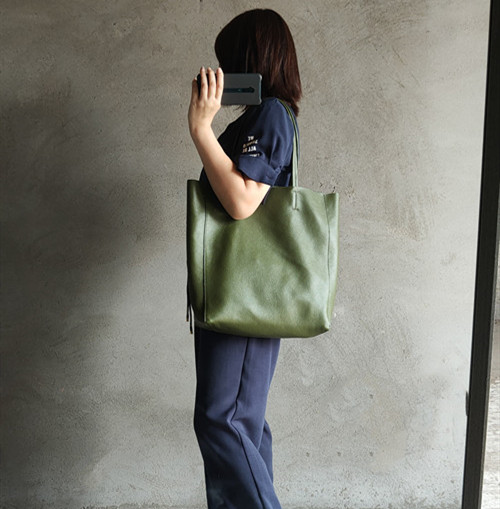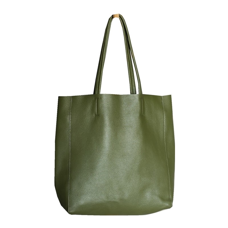 欧美新男女款头层牛皮包大容量包休闲极简约风绿色单肩包托特大包