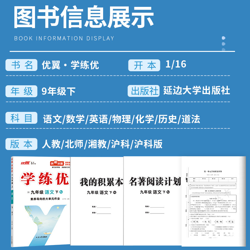 2026春【湖北/武汉专版】优翼学练优初中789年级上下册语文数学英语物理化学生物历史人教北师初中生同步练习册赠送检测卷中学教辅