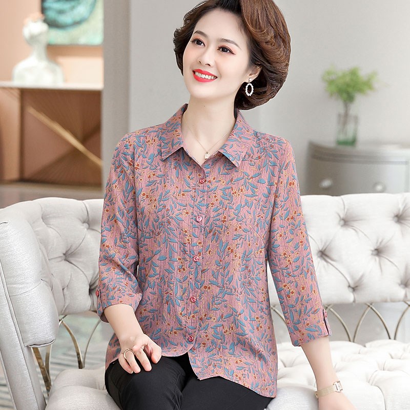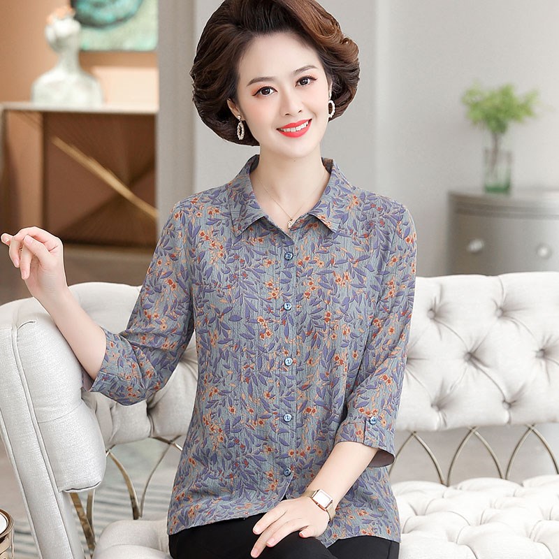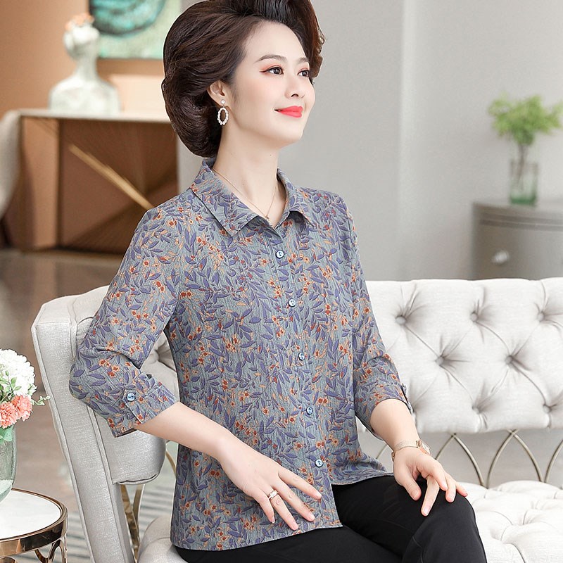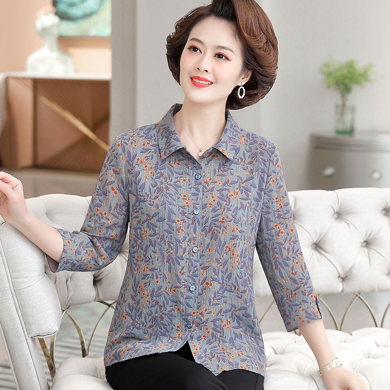 中年妈妈装春装2024新款衬衣服50岁中老年女装夏装洋气薄衬衫时尚