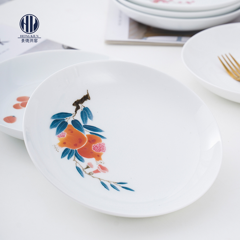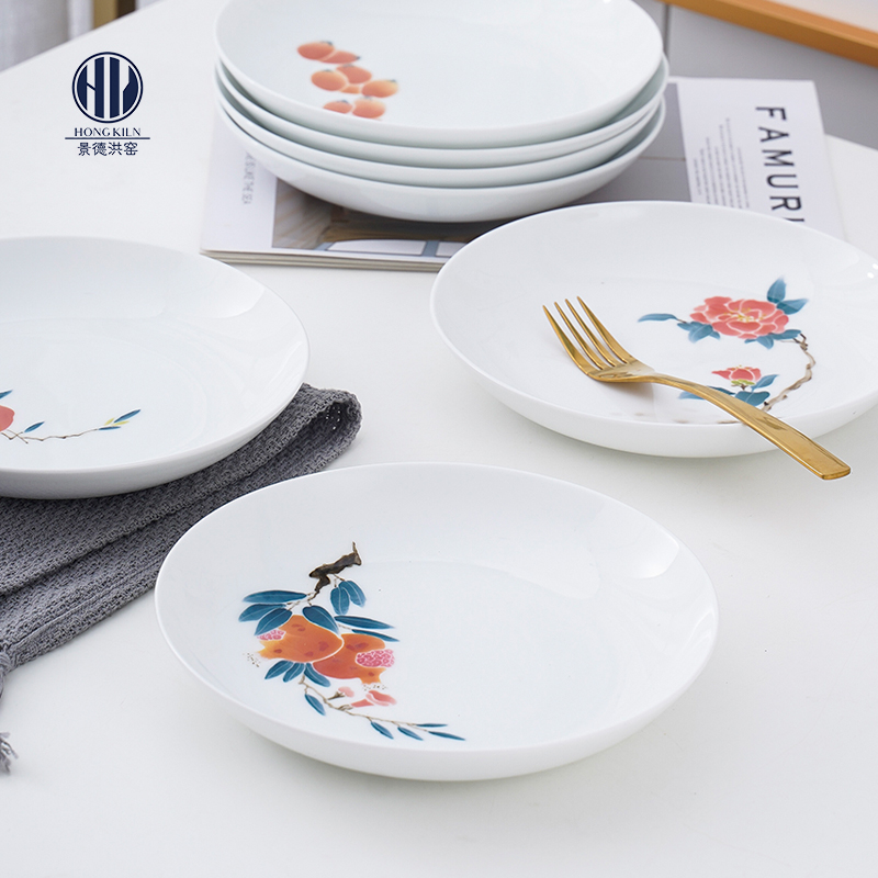 景德镇陶瓷早餐盘釉下彩手绘盘子菜盘家用深盘西餐牛排盘网红盘子