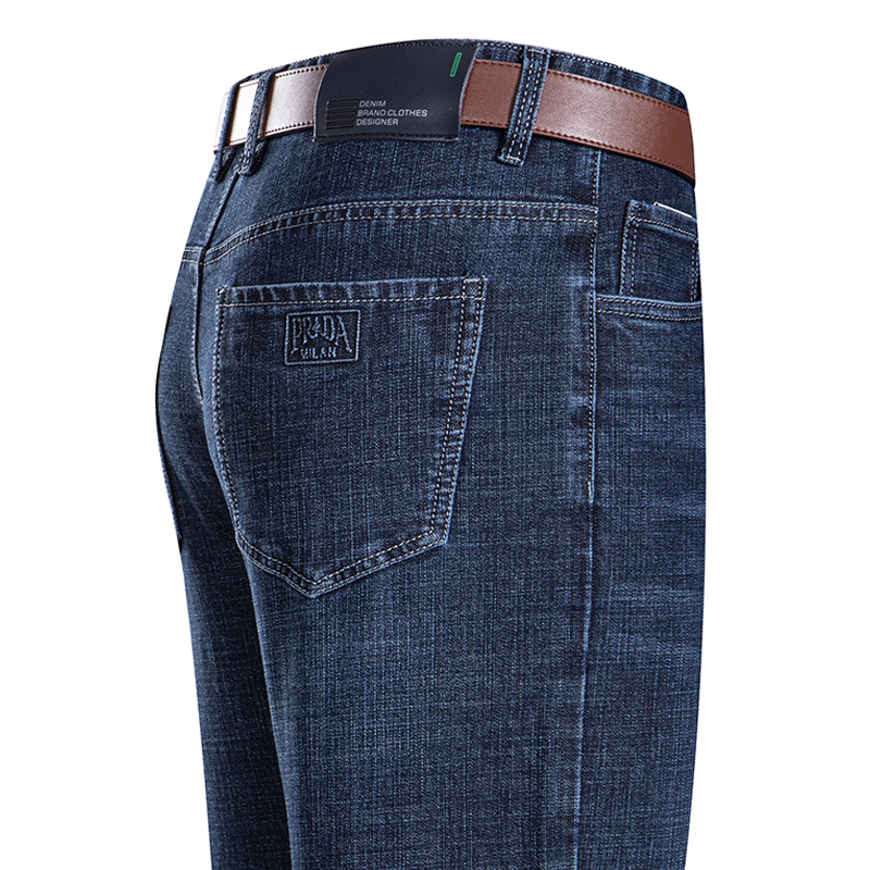 恒源祥春秋纯棉薄款牛仔裤男款中年爸爸装休闲直筒高腰长裤男宽松
