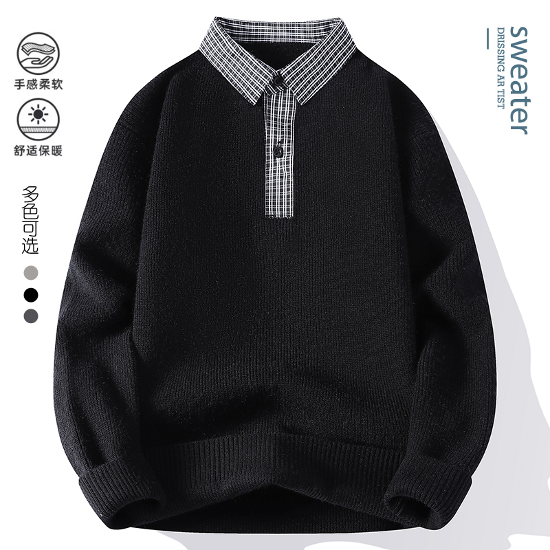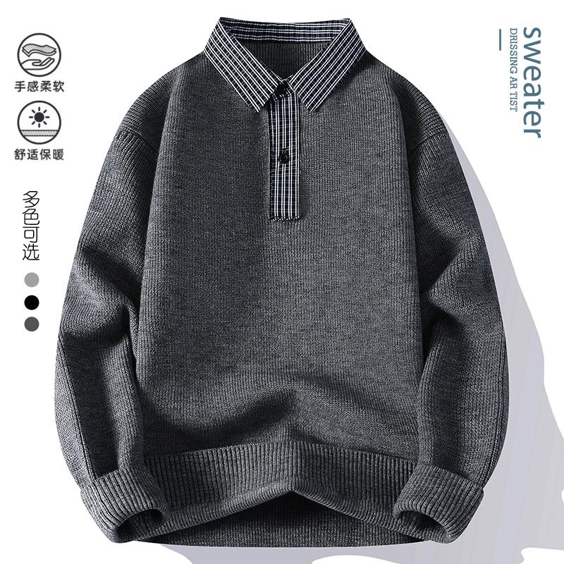 唐狮集团DESSO毛衣男士秋冬季潮流高级感学生衬衫领针织衫宽松