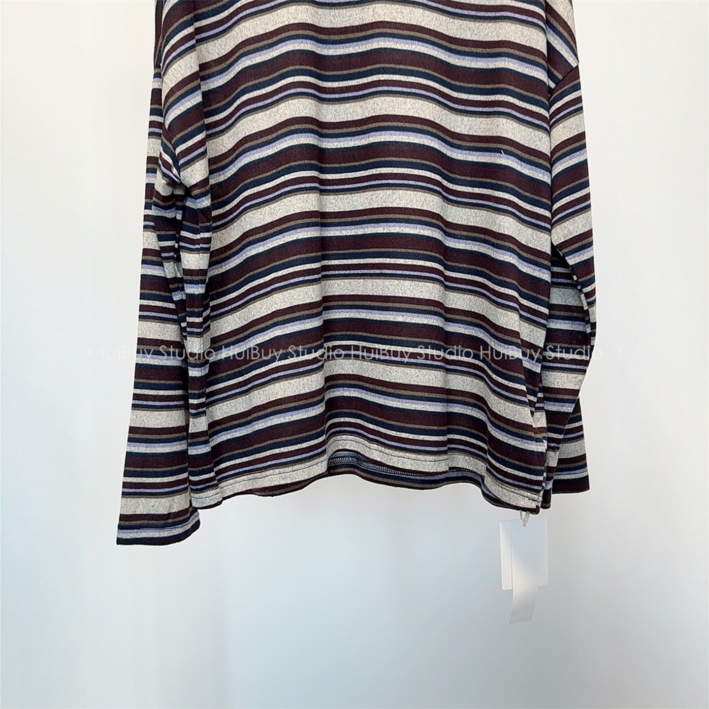 【会buy实拍】条纹针织长袖T恤女圆领打底衫宽松复古慵懒上衣女秋