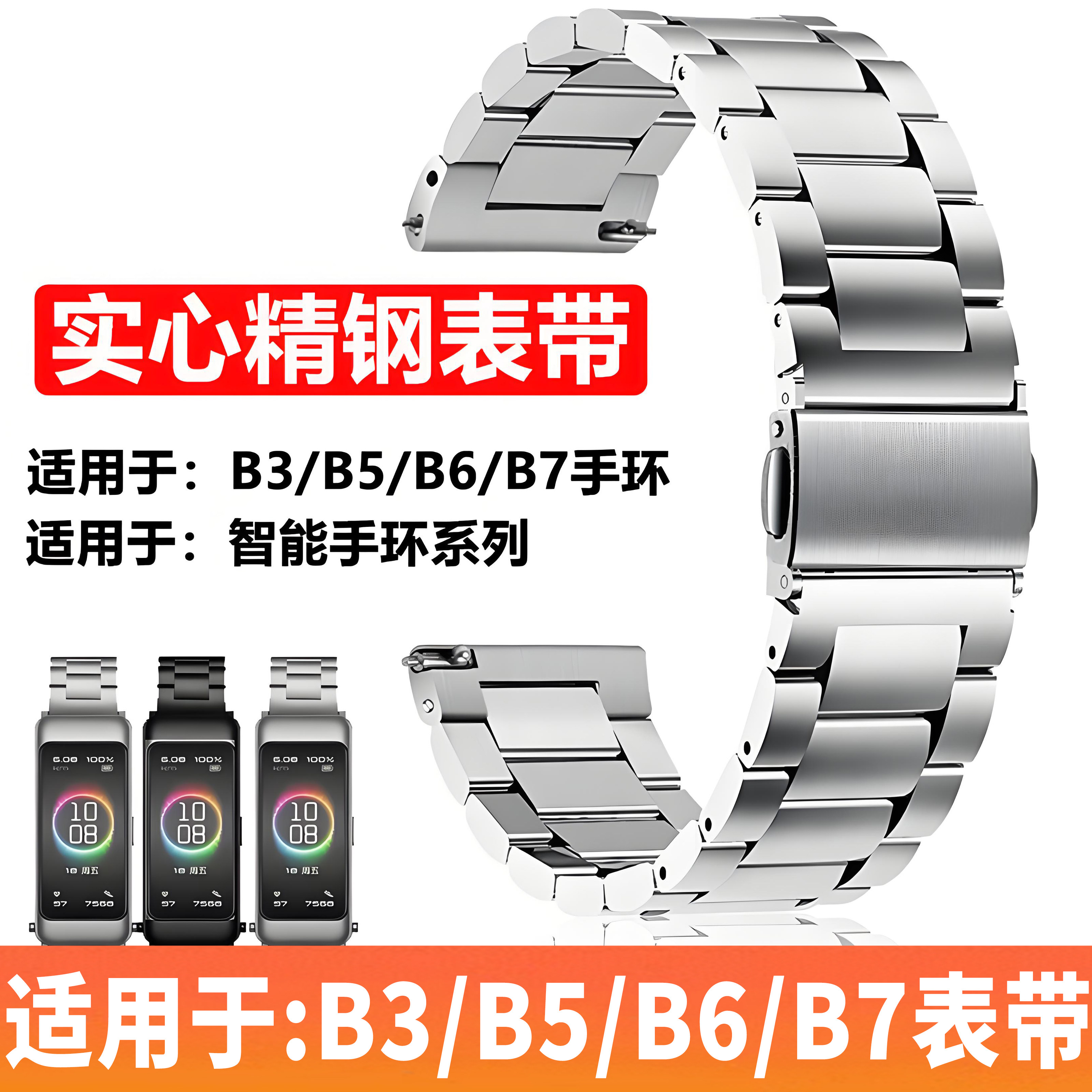 适用于华为B3B5B6B7手环手表带智能钢带运动商务米兰竹节钢带男女