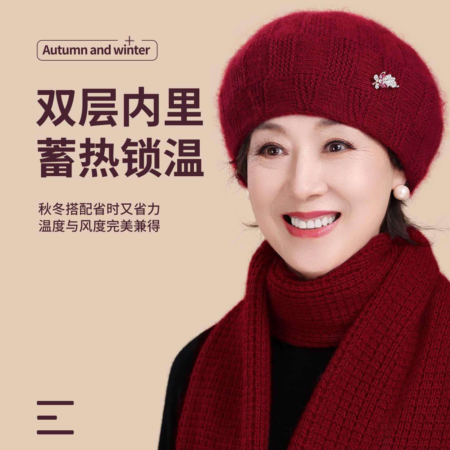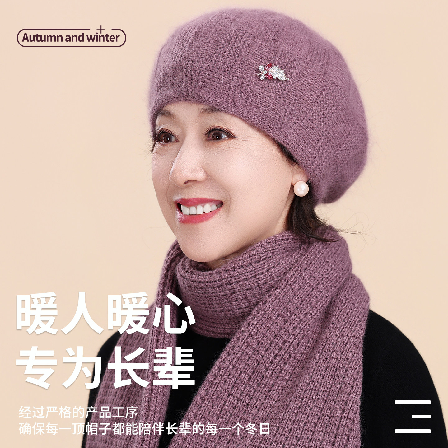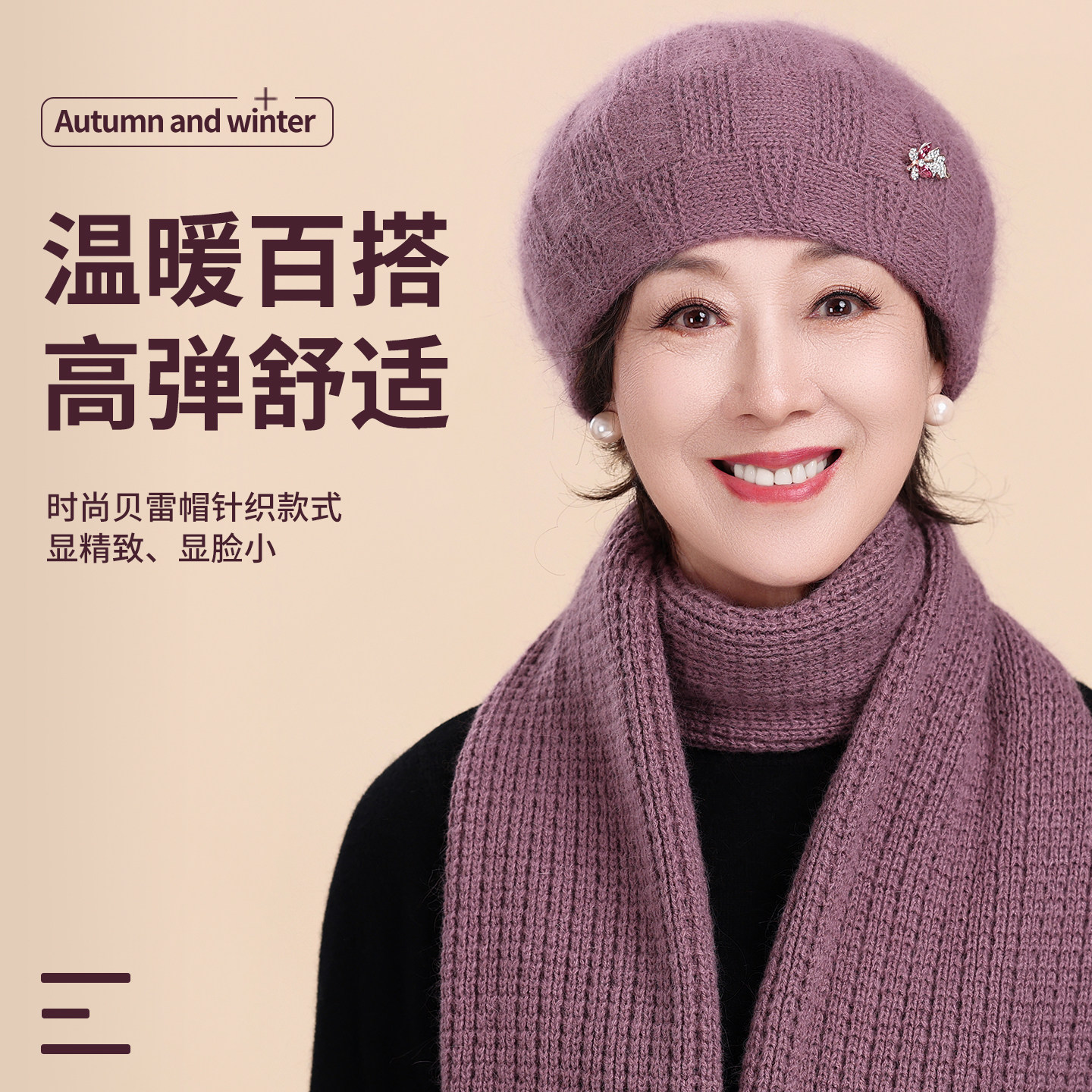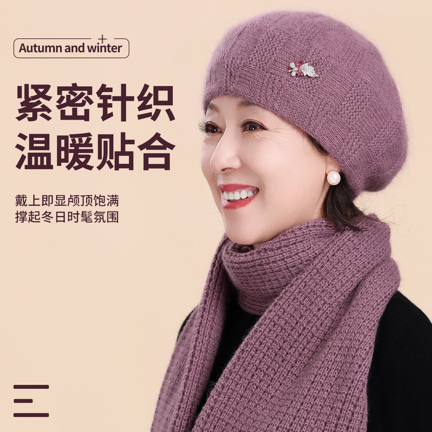 妈妈帽子洋气冬季2025新款贝雷帽中老年人奶奶冬天加绒保暖毛线帽