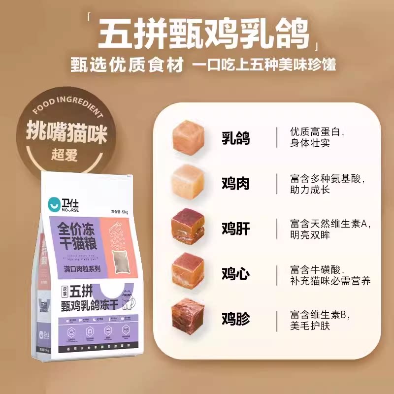 卫仕乳鸽冻干猫粮幼成猫鲜肉高蛋白肠胃国产营养品牌官方正品
