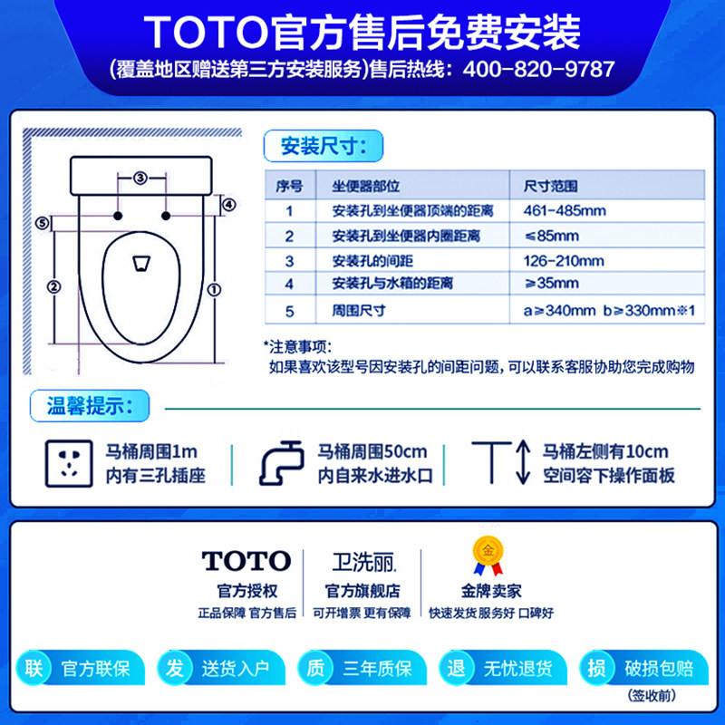 TOTO即热式卫洗丽智能马桶盖全功能盖板TCF3F260ECN (03-A)