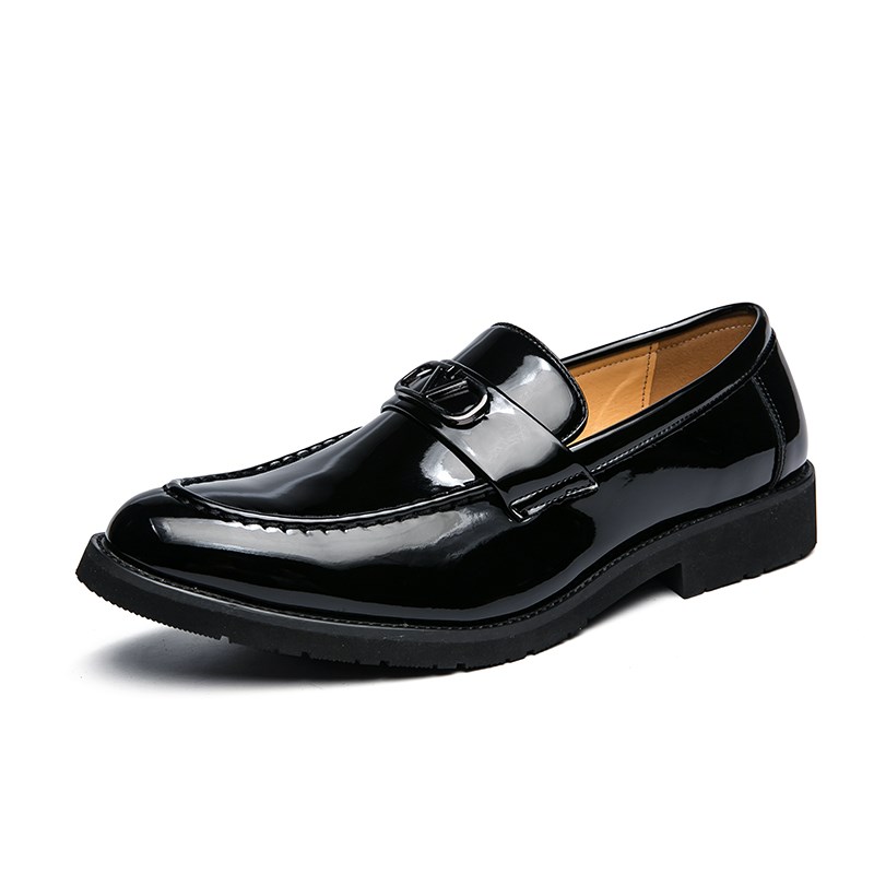 秋季皮鞋男漆皮韩版英伦风休闲黑色潮流厚底内增高软底.发型师男