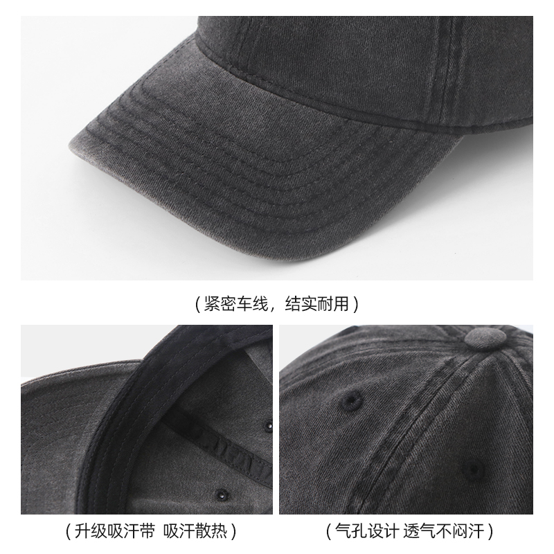 复古网红卡其色鸭舌帽男大头围水洗牛仔帽子女显脸小棒球帽宽帽檐