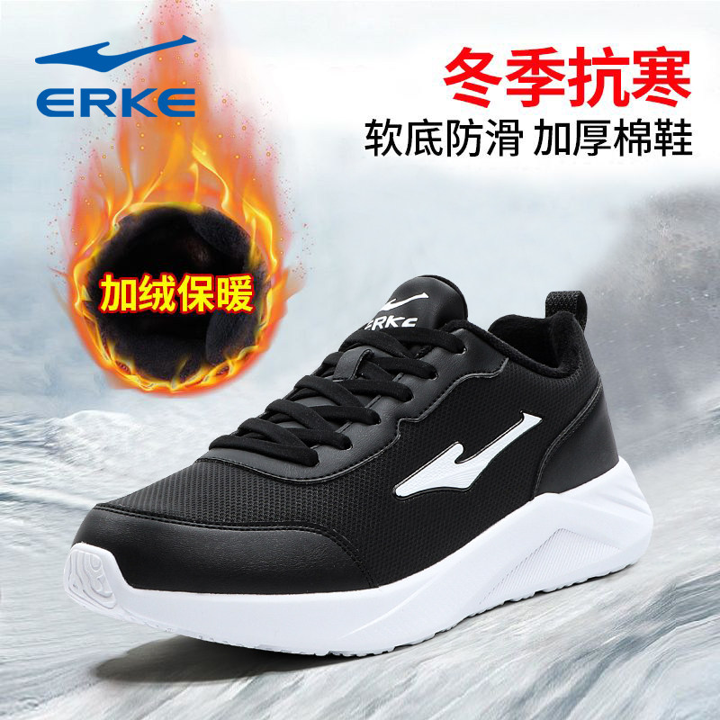 鸿星尔克加绒棉鞋男鞋冬季保暖防臭跑鞋防滑减震男士轻便运动鞋子
