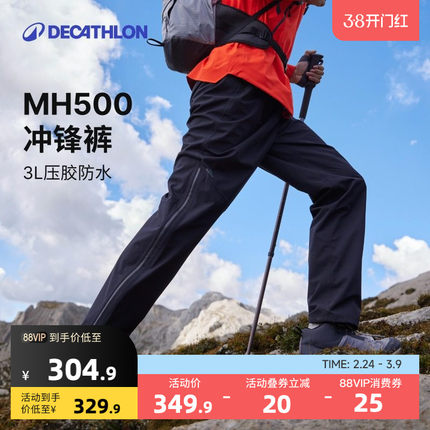 迪卡侬MH500 3L压胶硬壳冲锋裤男女户外登山裤徒步裤防水防风雪山
