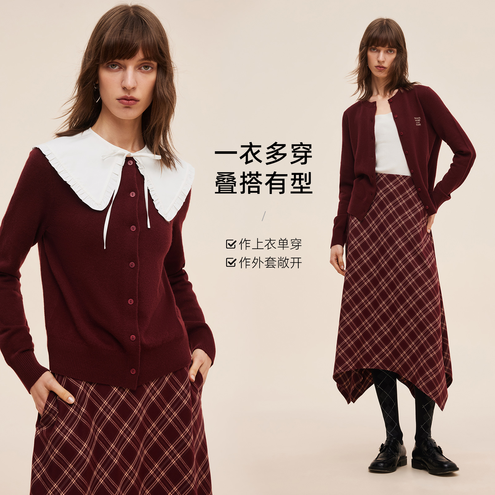 歌莉娅全羊毛开衫女2025新款秋季流行miu系穿搭显瘦上衣1E8J6E0S0