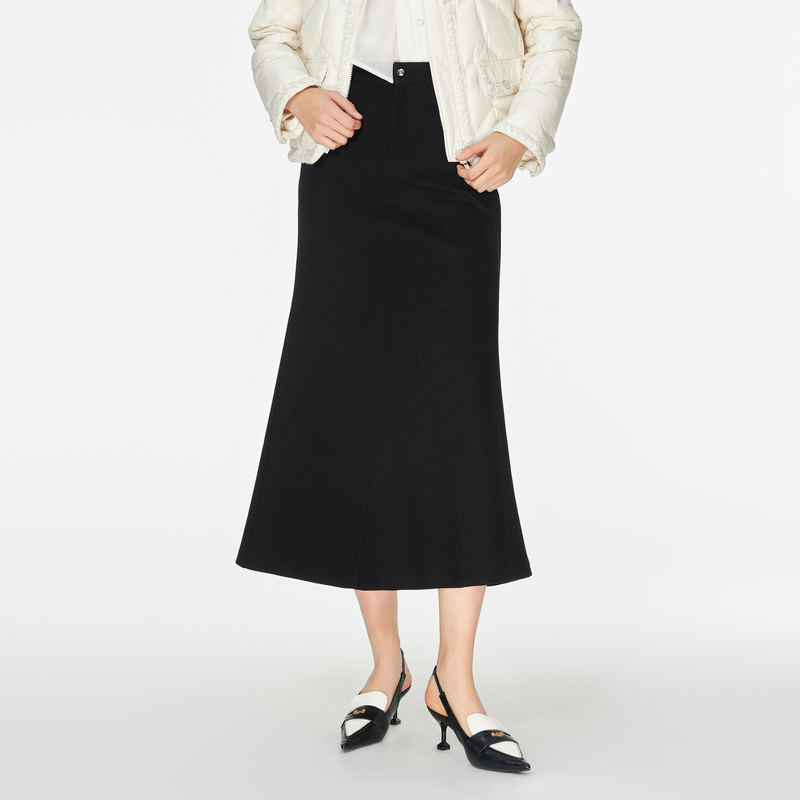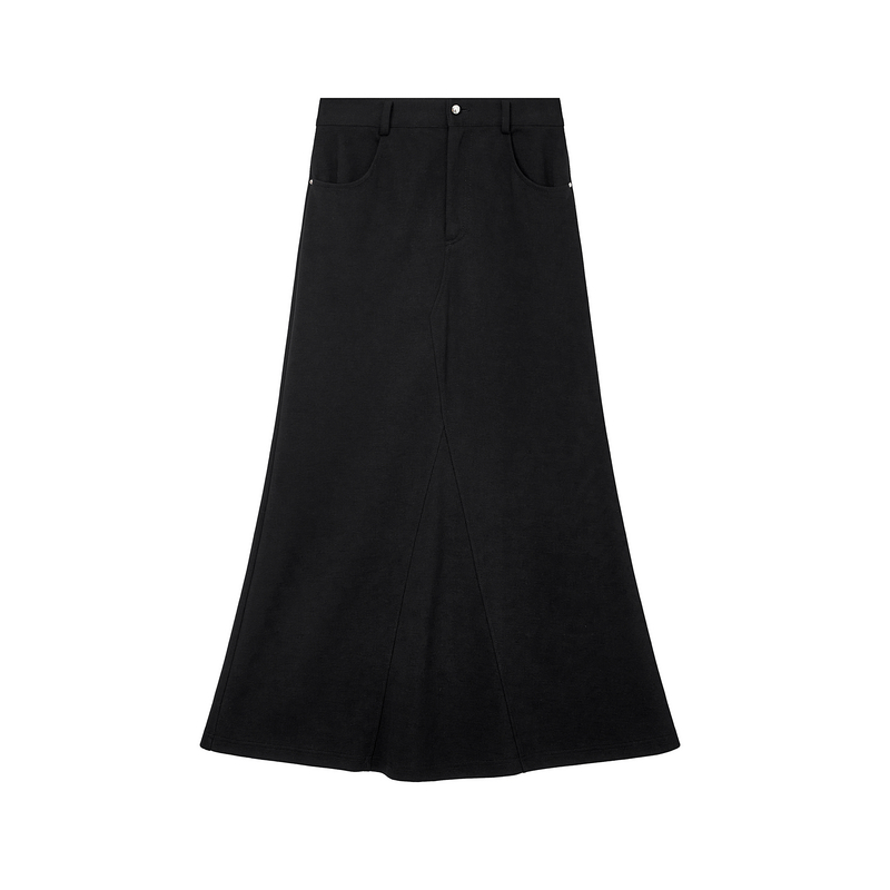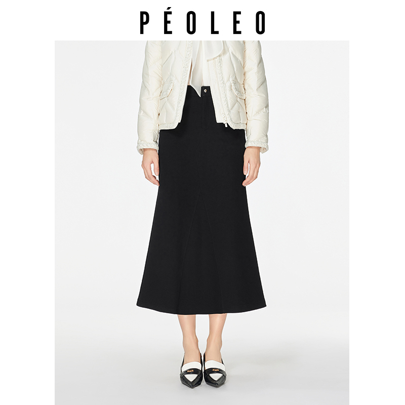 飘蕾Peoleo黑色显瘦百搭半身裙2025秋冬新款遮胯宽松复古A字长裙
