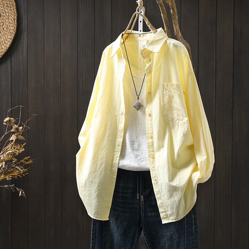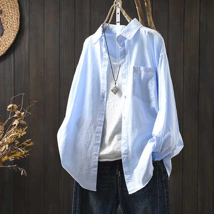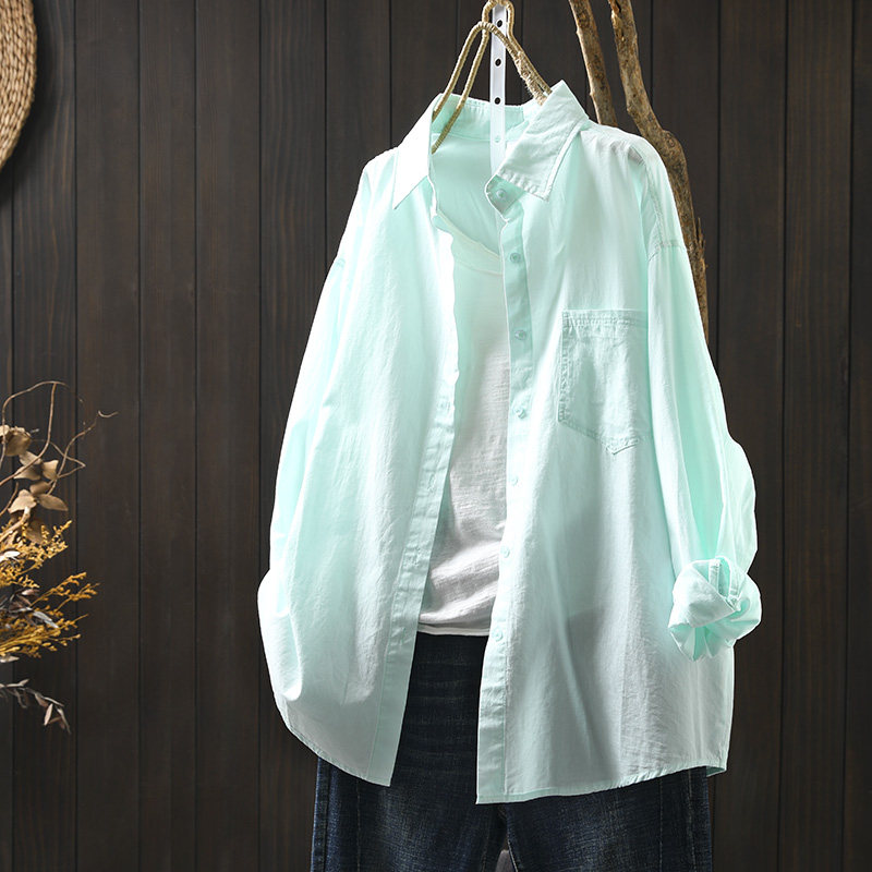中长款纯棉衬衫外套女长袖宽松春夏秋休闲百搭外穿空调衫防晒衬衣