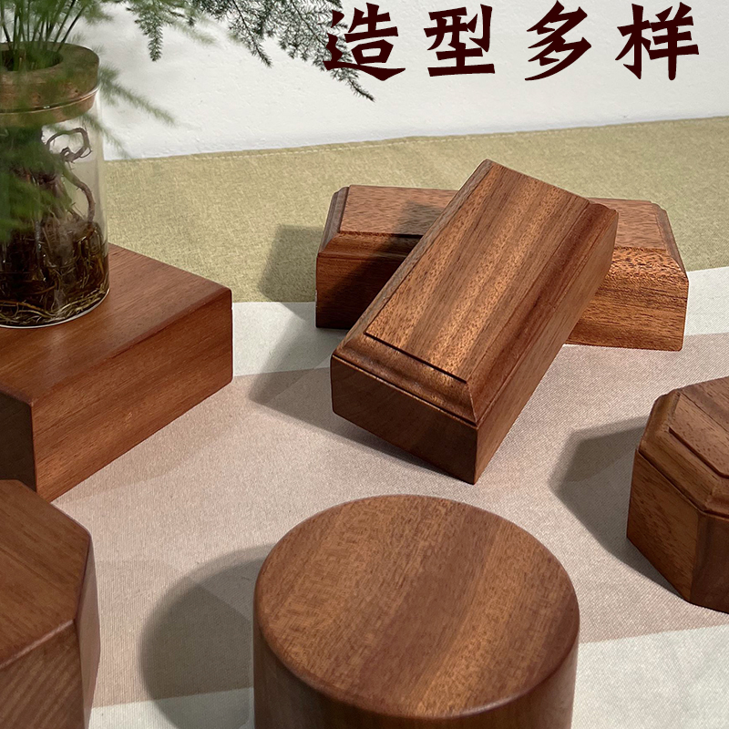 加厚实木首饰工艺品胸像托架花瓶佛像地台圆形手办模型摆件底座