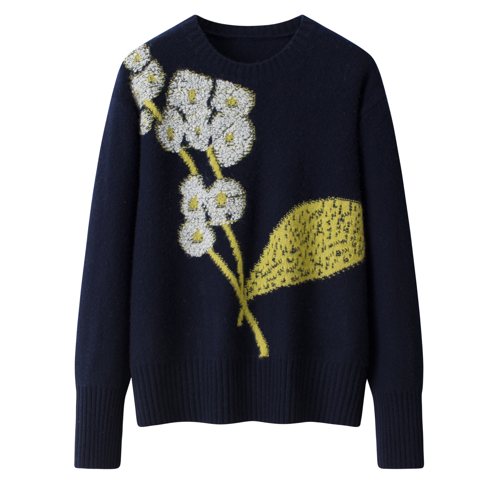 100山羊绒短款绣花女开衫~鄂尔多斯市产双股宽松针织衫休闲毛衣潮