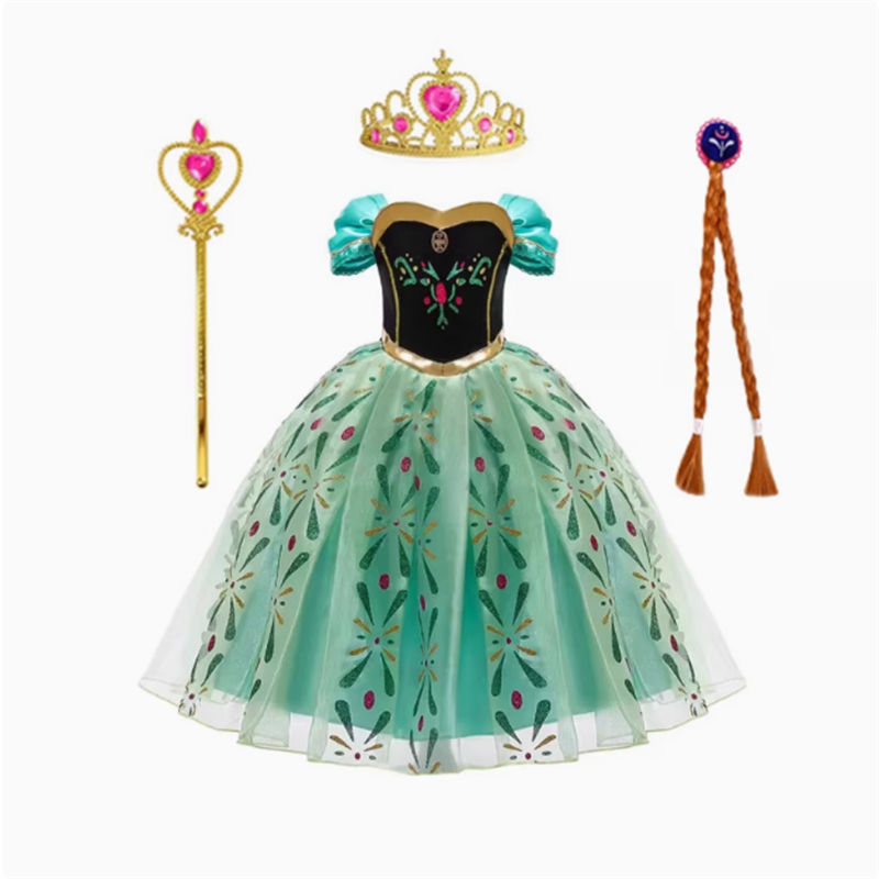 冰雪奇缘安娜公主裙女童迪士尼cos服六一儿童演出服装蓬蓬裙礼裙