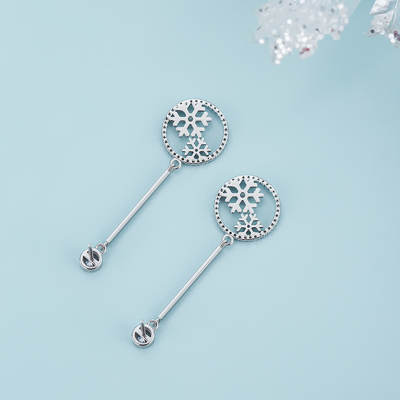 海盗船银饰新款瑞雪图耳坠女925银长款雪花耳环韩国气质银耳钉潮