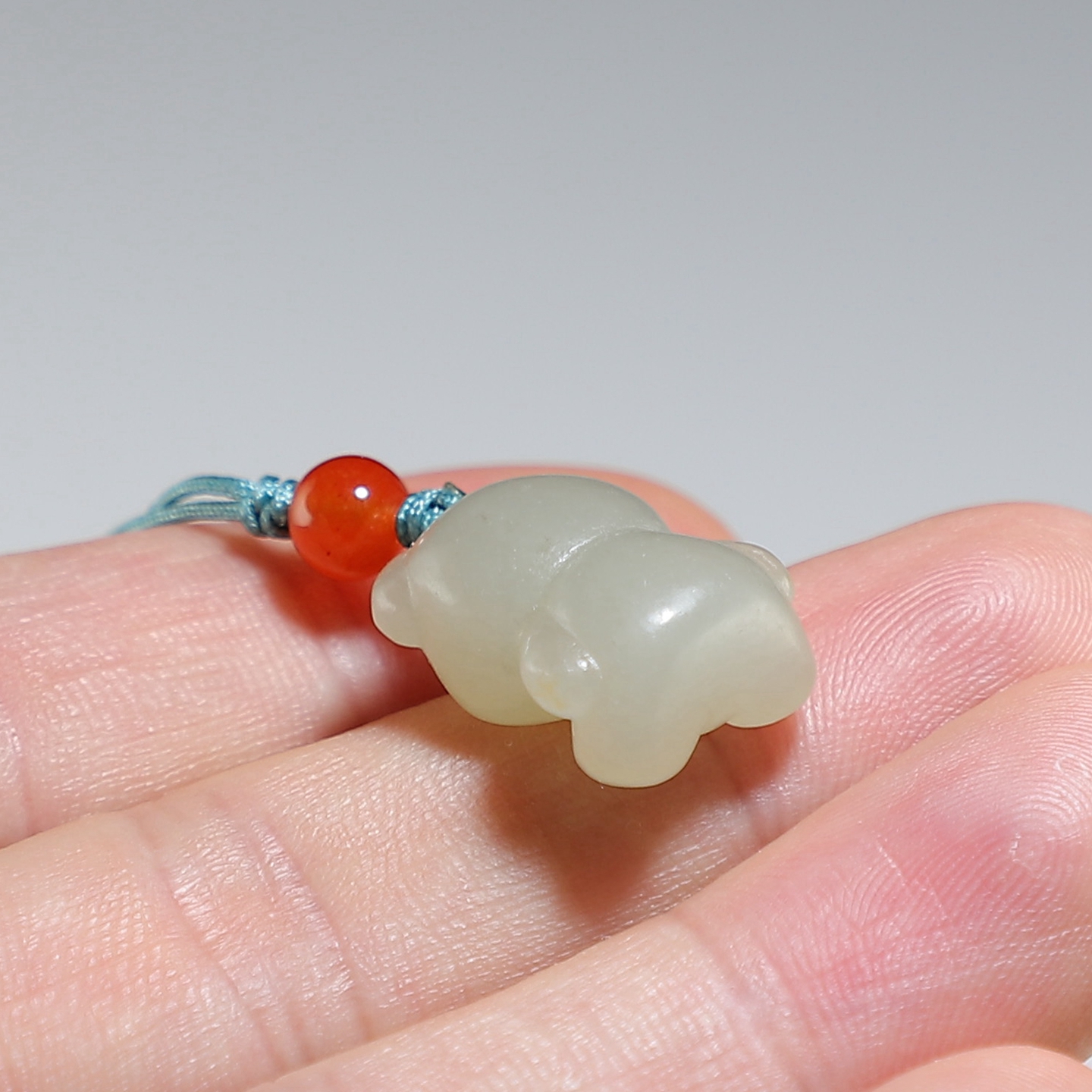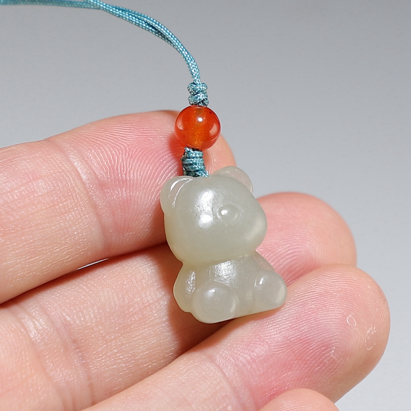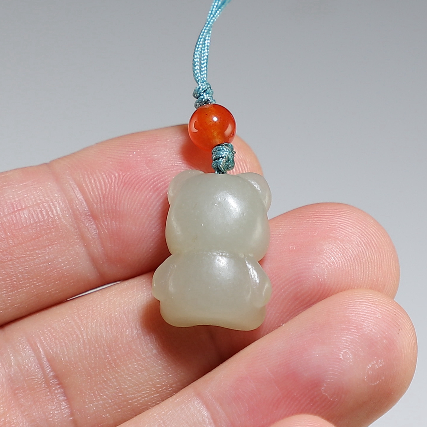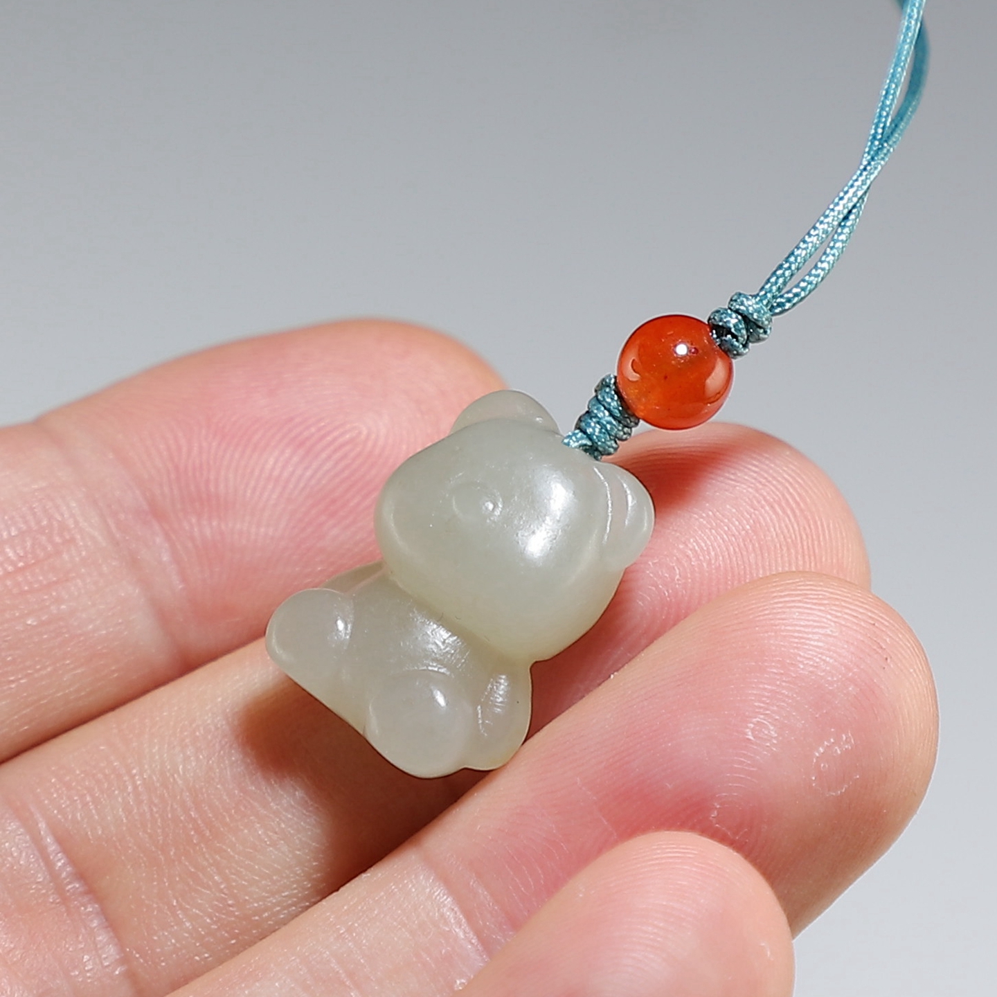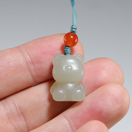 [手工雕刻]和田玉熊手机挂件 新疆青白玉小吊坠 bear 楼叔孤品