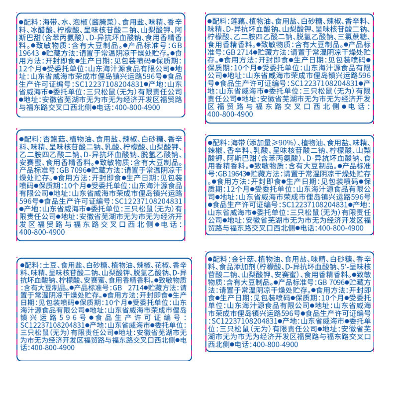 三只松鼠鲜脆爽礼包520g零食辣味解馋独立小包装土豆片菇