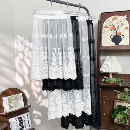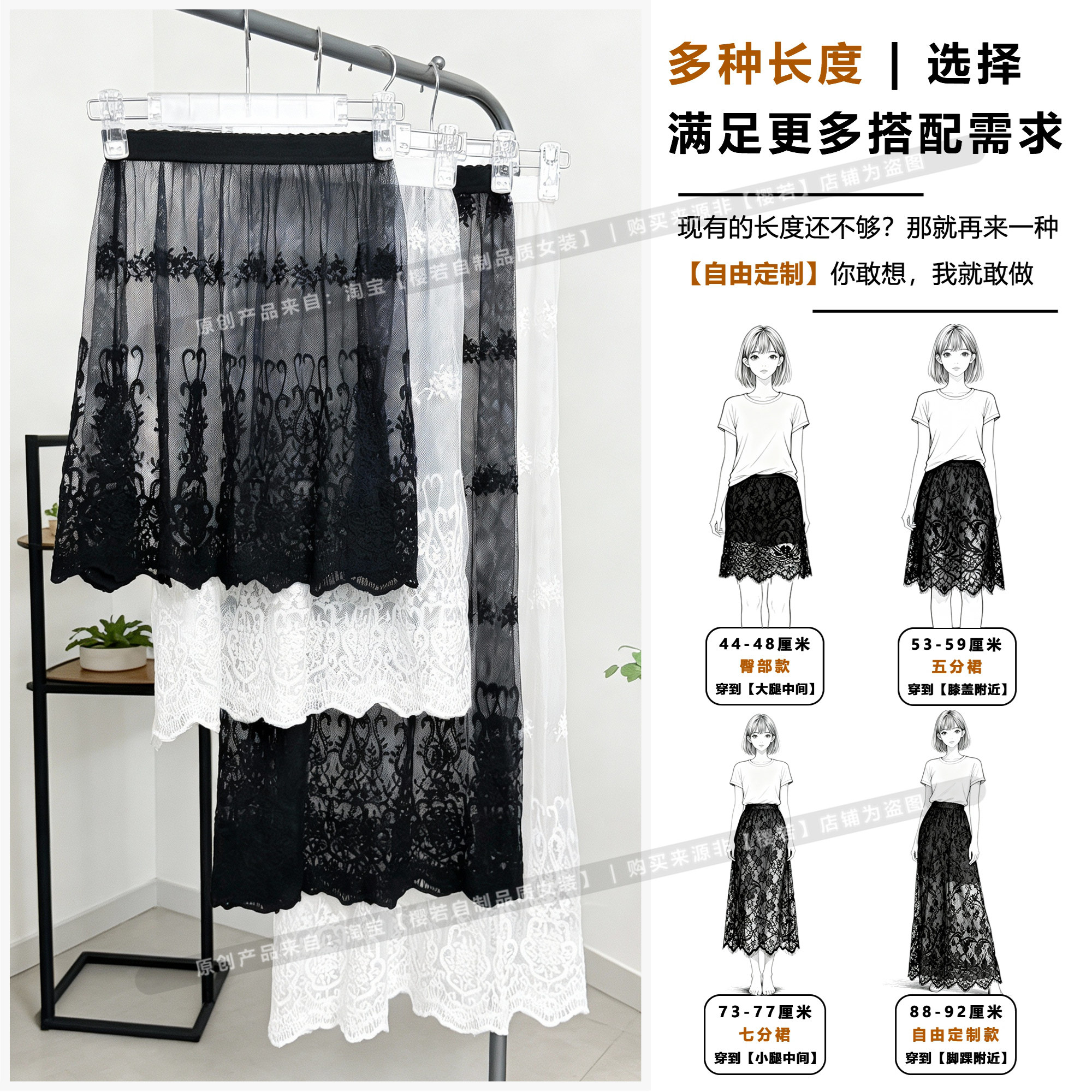 2025叠穿裙屁帘下摆卫衣蕾丝打底裙旗袍内衬裙小白裙遮胯半身裙