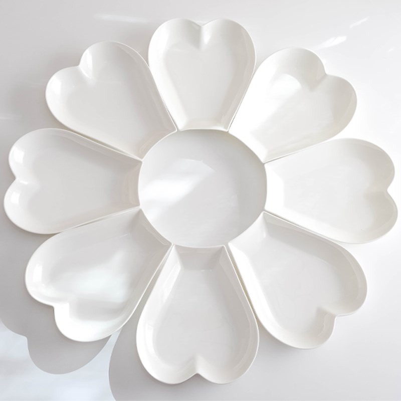 骨瓷心型拼盘f家用纯白陶瓷餐具菜盘水果盘异型深盘扇形组合套装