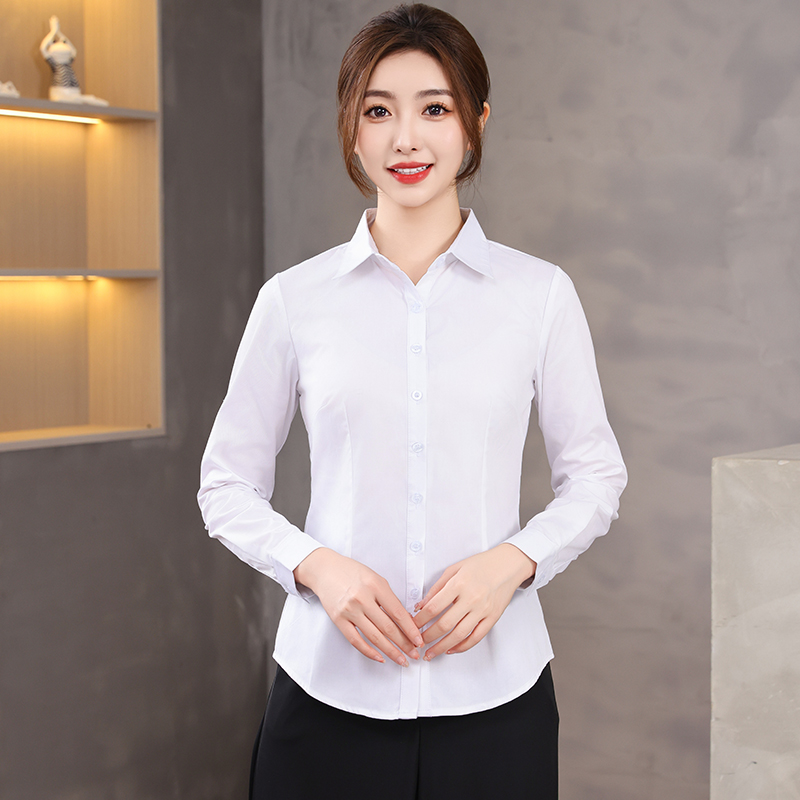 纯棉长袖白色衬衫夏季短袖春秋款职业工装修身通勤面试白衬衣