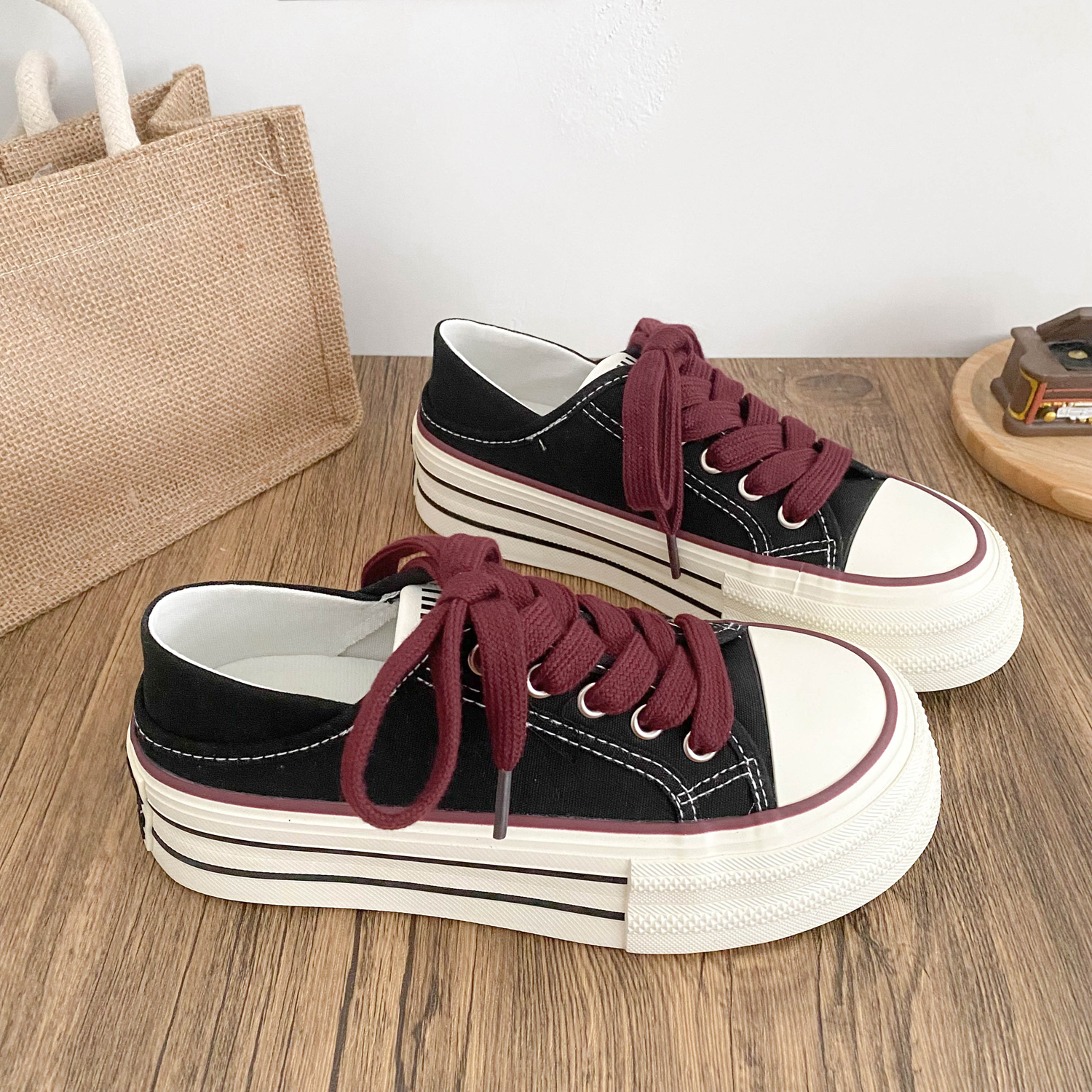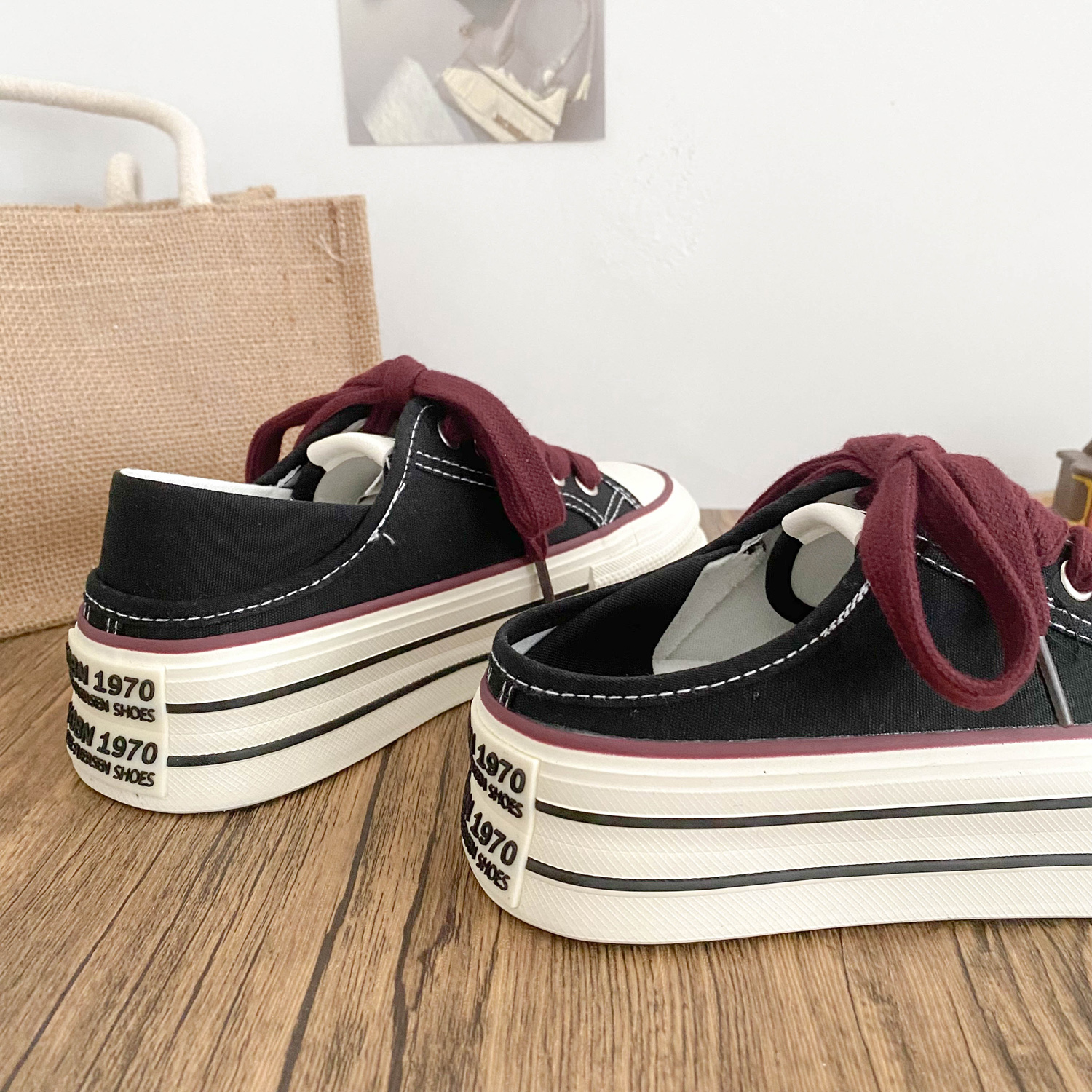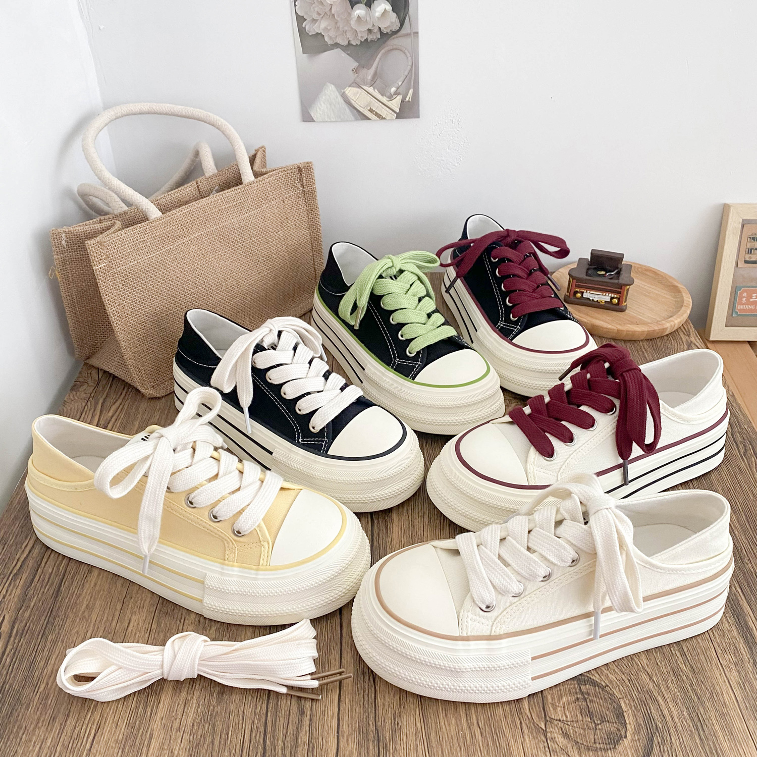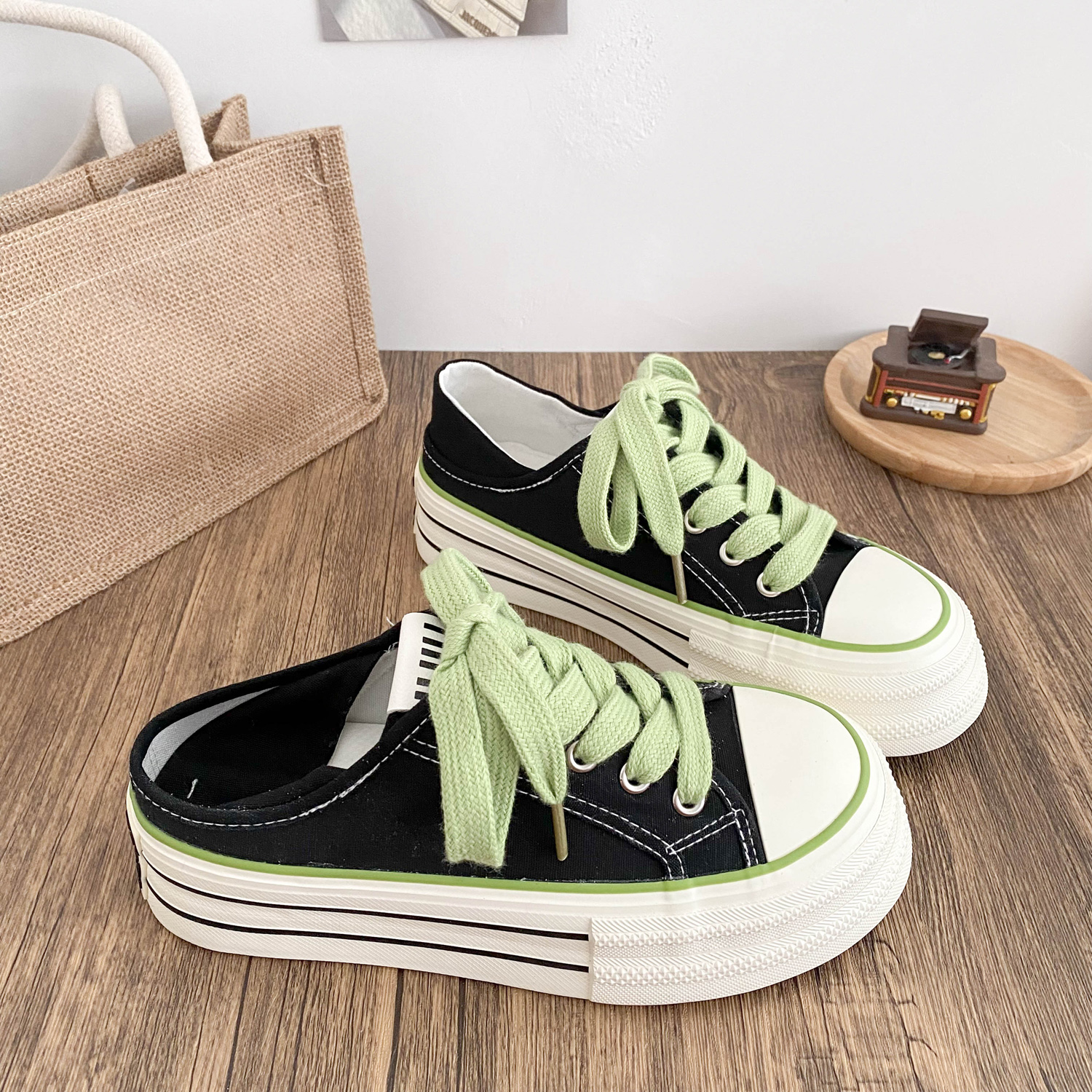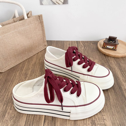 两穿可踩厚底增高帆布鞋女一脚蹬