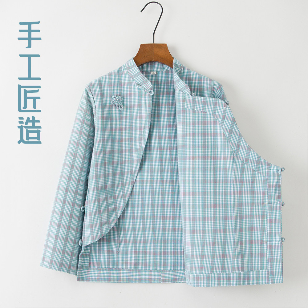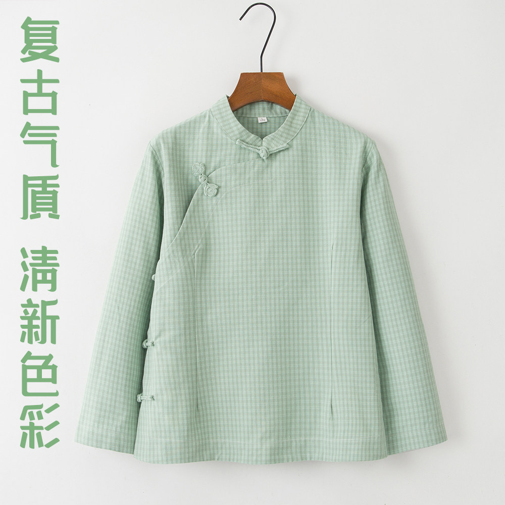 春秋新款中国风斜襟女装汉服长袖唐装衬衫宽松圆领休闲风百搭上衣